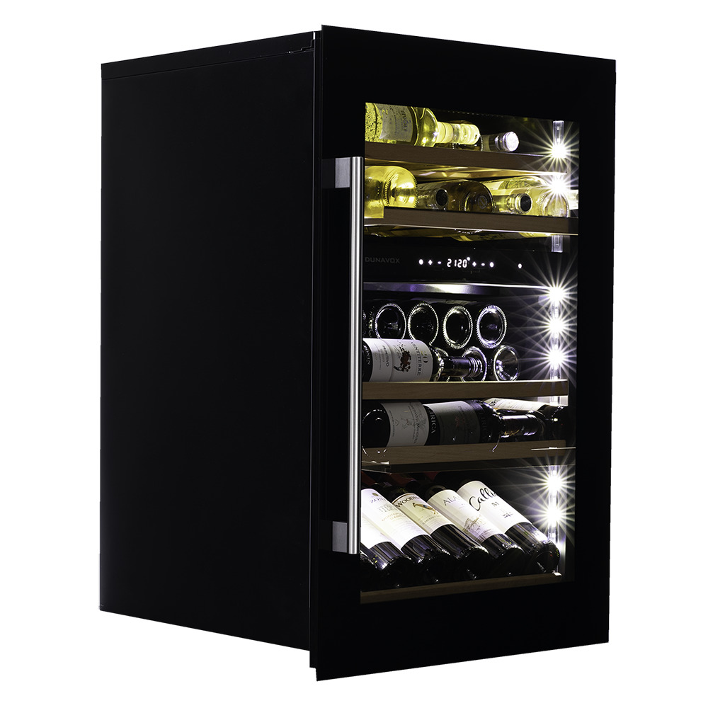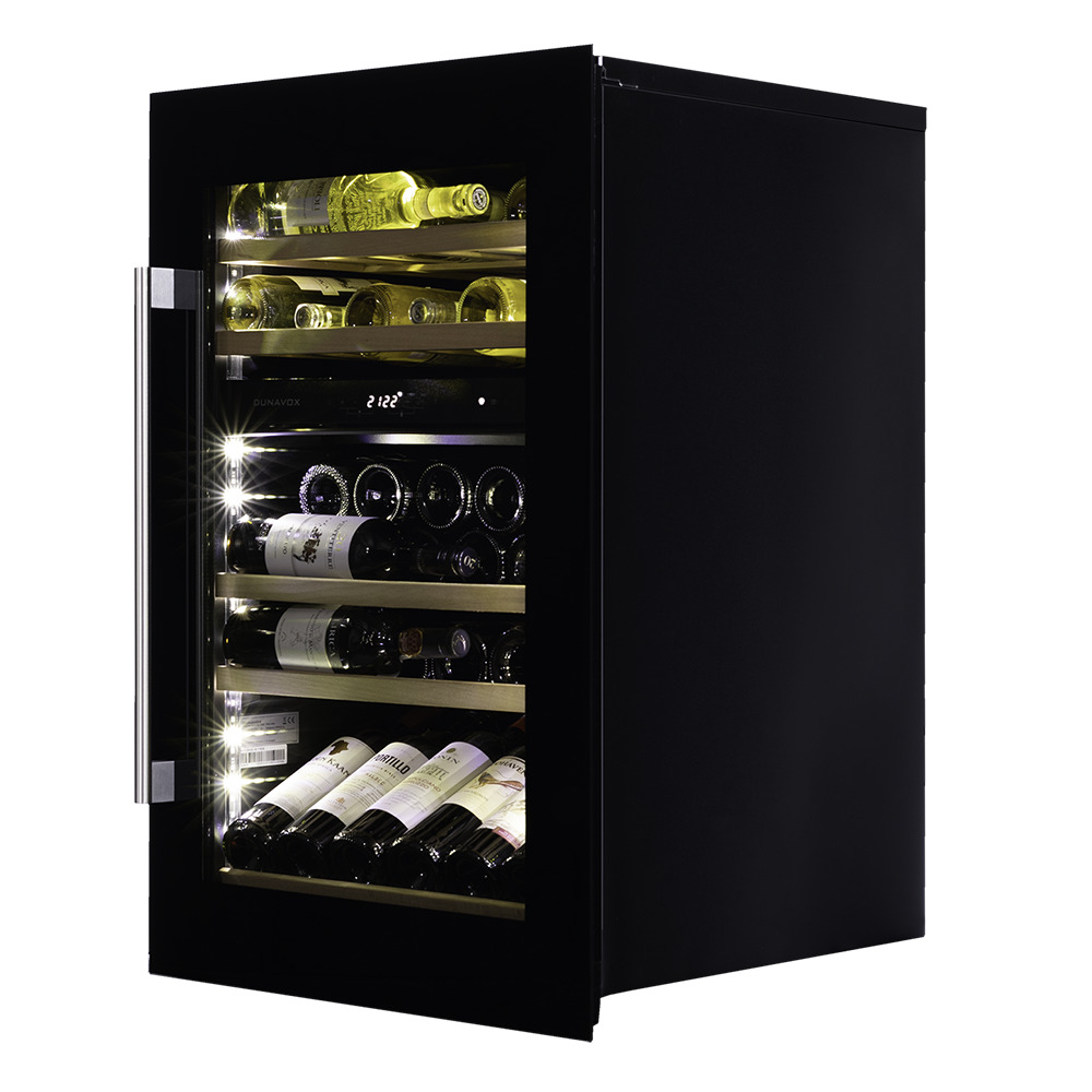 После установки дверь открывается с помощью ручки из бесшовной нержавеющей стали. В качестве дополнительной функции, производители Dunavox разработали реверсивную дверь. Это поможет разместить шкаф в удобном для Вас месте или расположить две модели рядом, создав технологию открытия side-by-side.Тройное стекло с защитой от прямых УФ-лучей поддерживает качественные условия хранения вина. Встроенная система вентиляции создаёт необходимую циркуляцию воздуха для правильной работы винного холодильника.