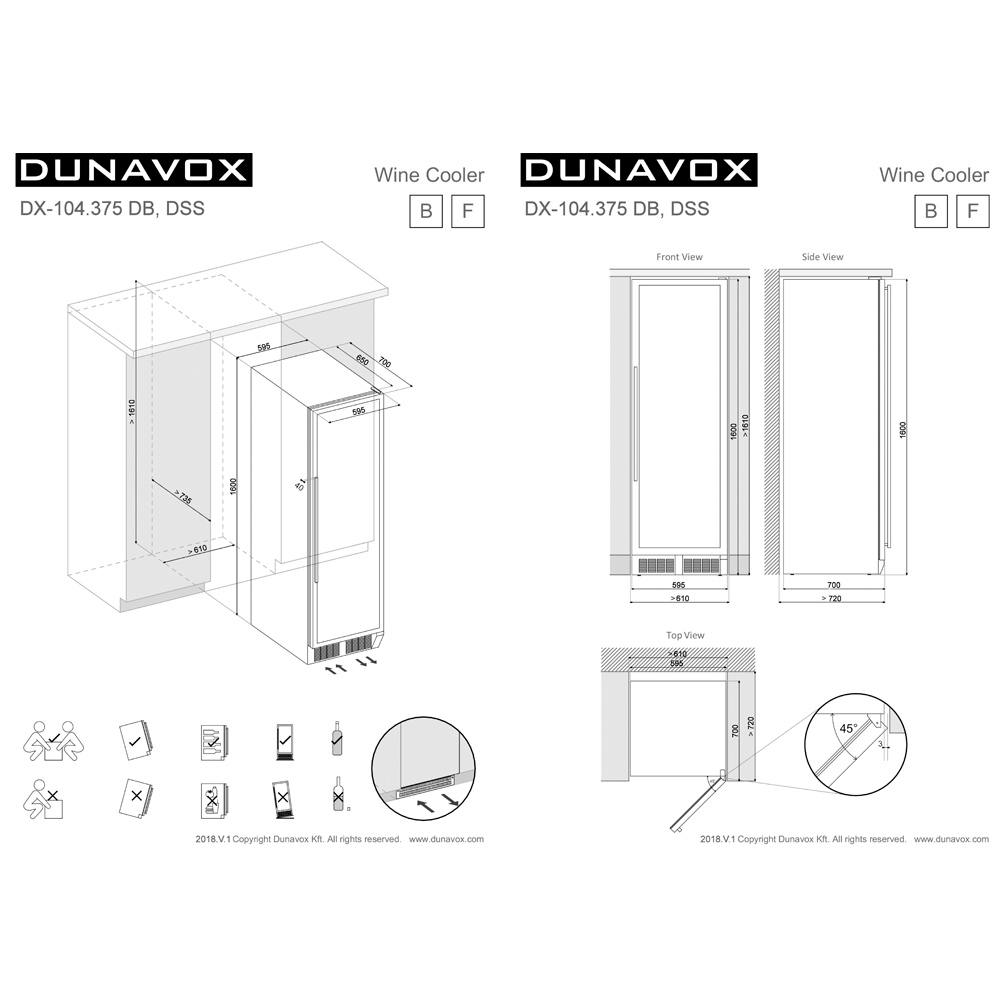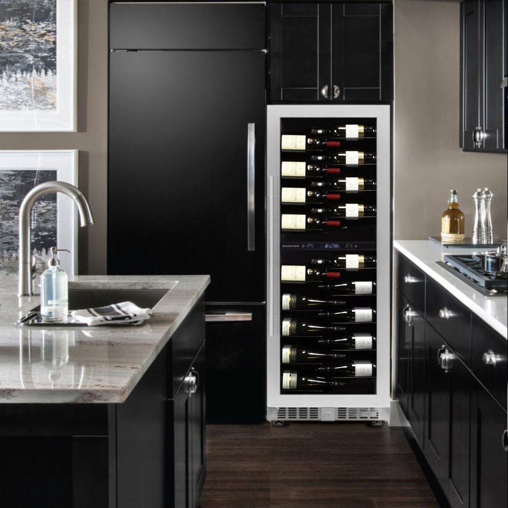 Винный шкаф Dunavox DX-104.375DSS – роскошная новинка в сфере качественного хранения и дозревания вин! Благодаря современному продуманному дизайну, он шикарно вписывается в любой интерьер и пользуется большой популярностью как в ресторанном бизнесе, так и у винных коллекционеров. Наличие разных температурных зон позволяет помещать в него красные, белые и даже игристые вина.
