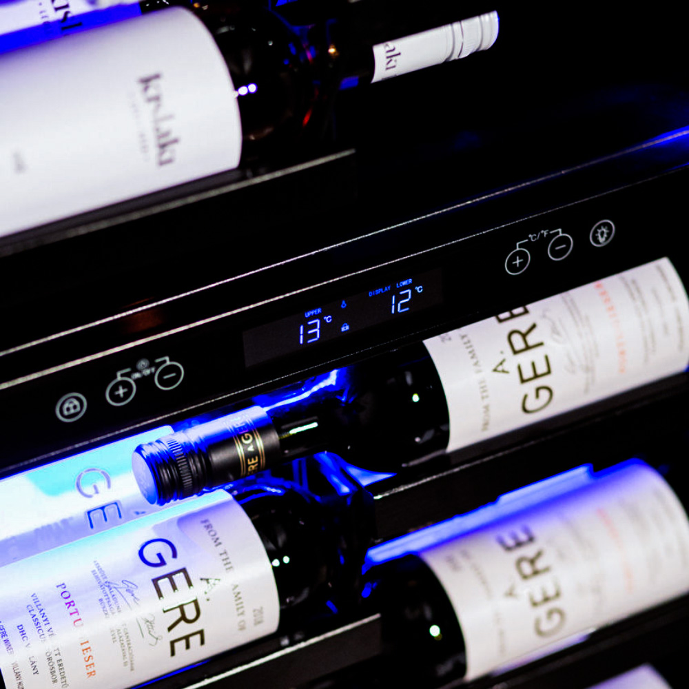 Пользователь может выставить необходимую температуру для подачи красных, белых и игристых вин с помощью удобной сенсорной панели управления.