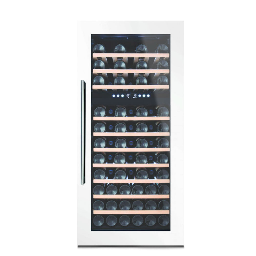 Добавили мы и немного уникальности к данной модели. Разработали две, полностью настраиваемые температурные зоны. Теперь можно одновременно, в одном месте хранить разные сорта вин. Но стоит учесть определенные моменты, что не рекомендуется устанавливать в нижней зоне температуру выше, чем в верхней зоне! Данная модель предназначена только для встраивания.
