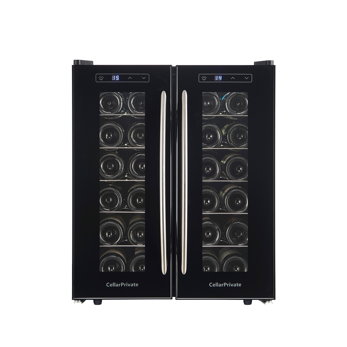 CellarPrivate CP024-2T это двух камерный винный шкаф с двумя дверцами, которые открываются нараспашку. Вместимость до 24 бутылок. Температура выставляется в каждой камере раздельно, что позволяет хранить одновременно красные и белые вина.