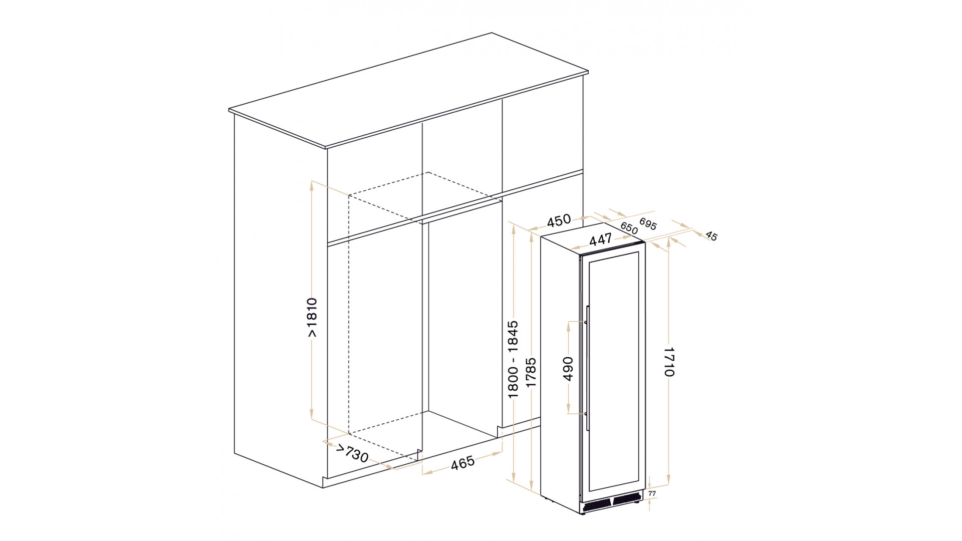 Этот винный холодильник отлично впишется в любой кухонный гарнитур благодаря своим размерам. Это одна из немногих моделей, у которой ширина всего 45 см.