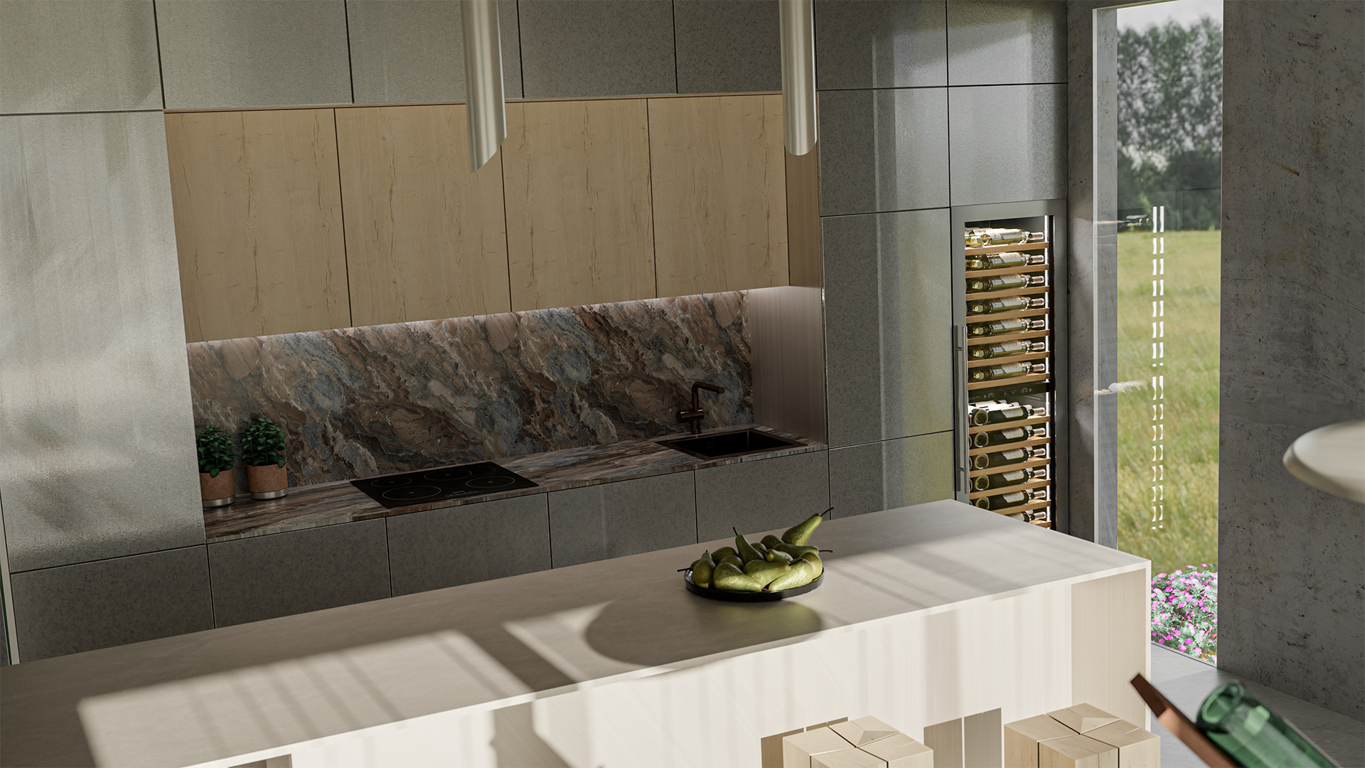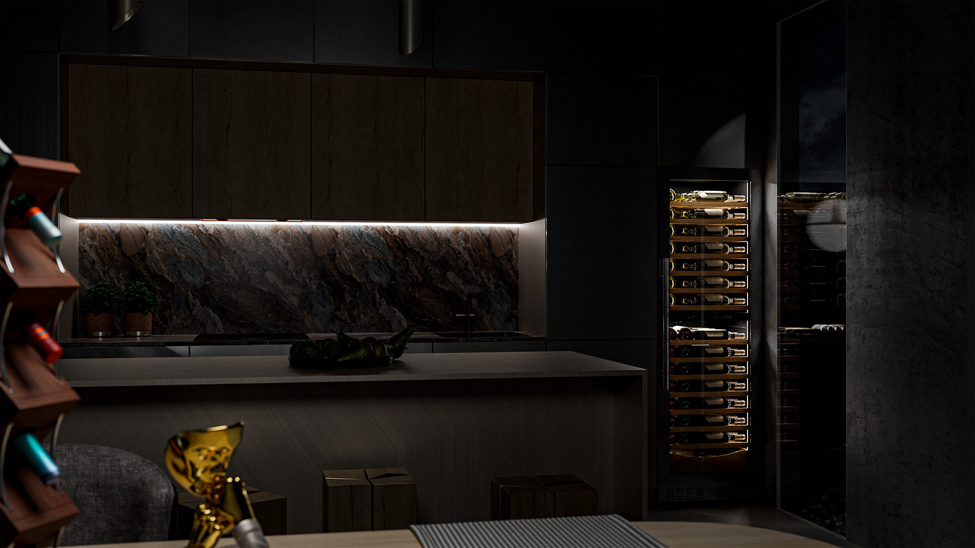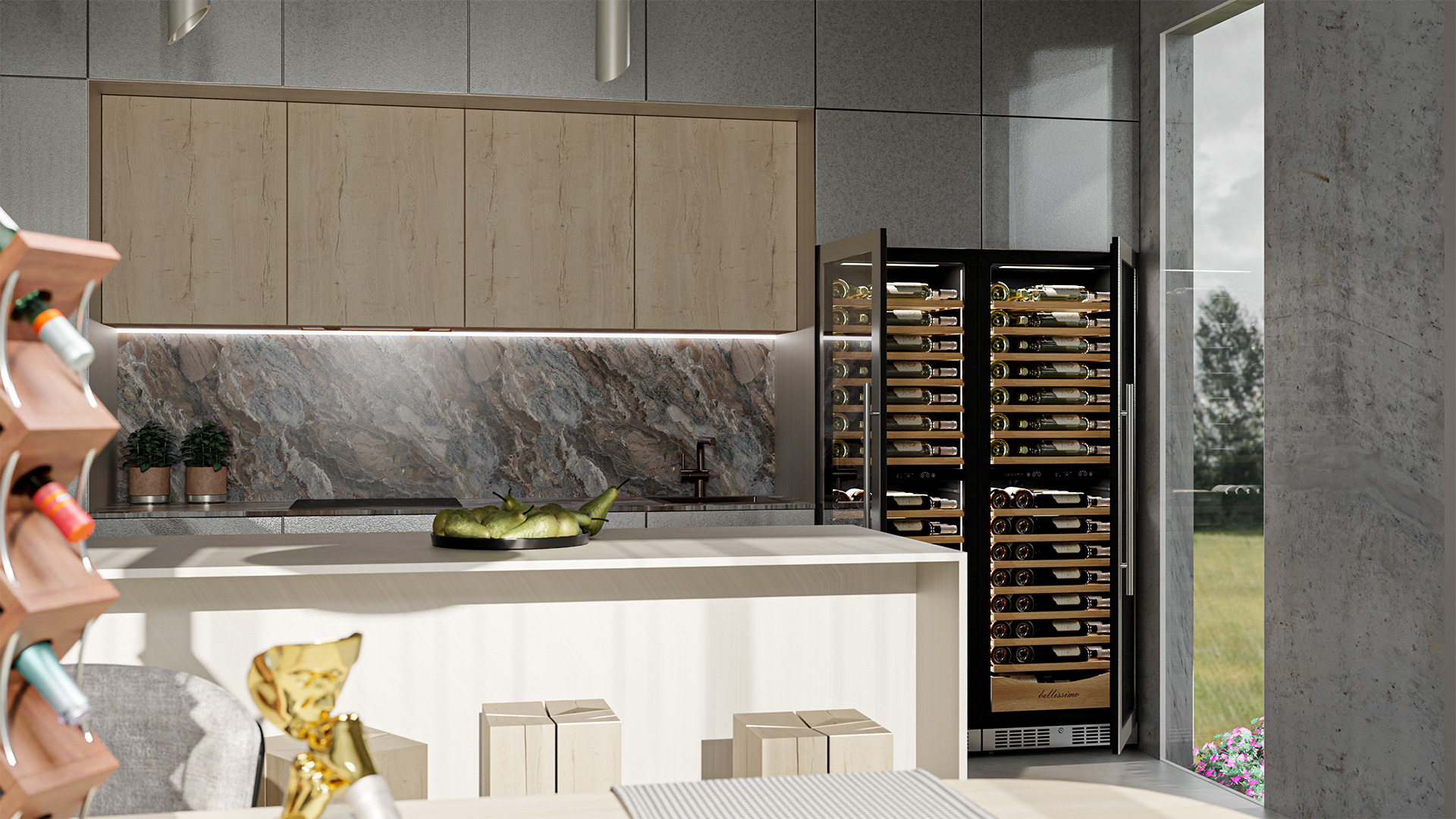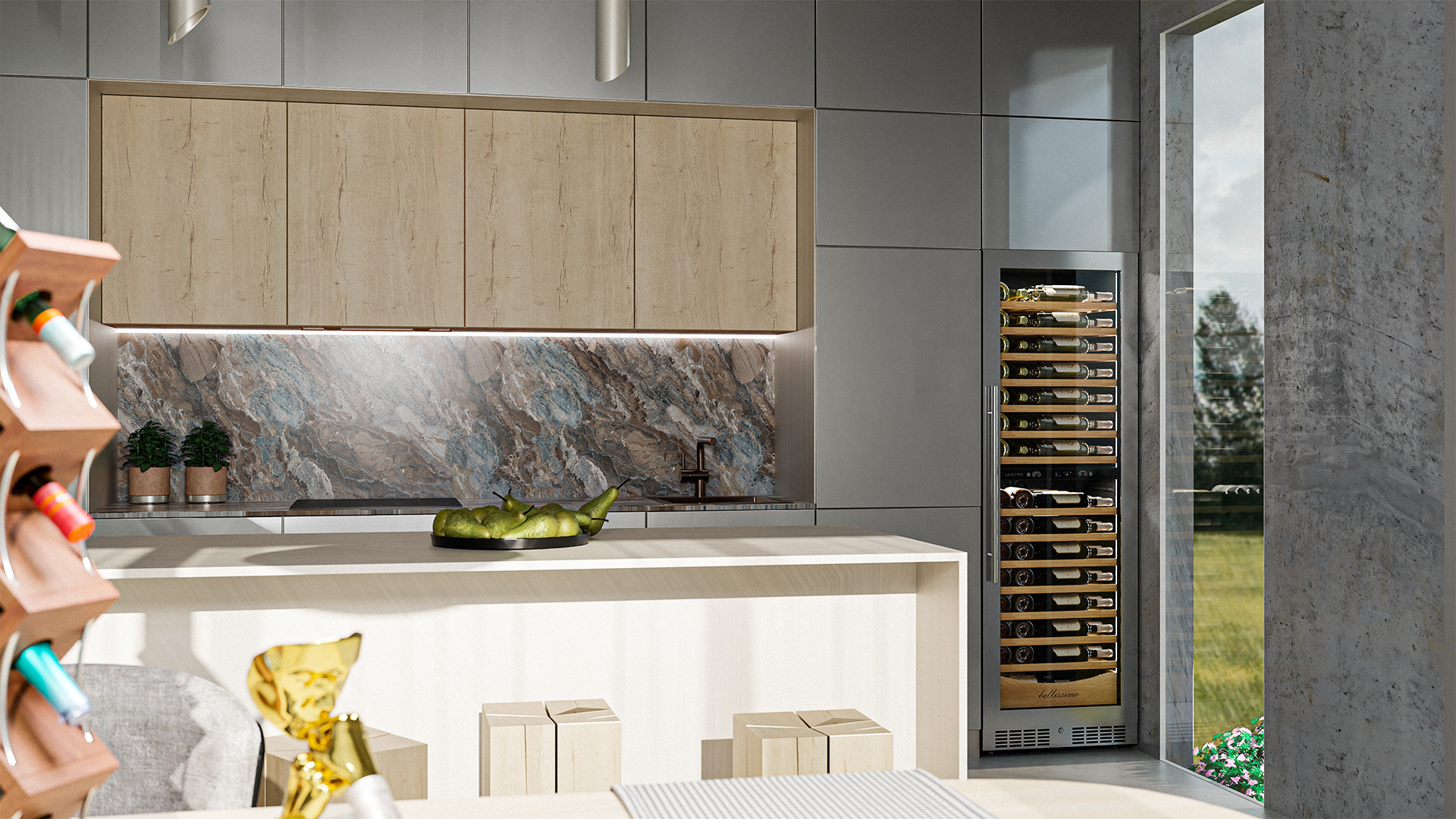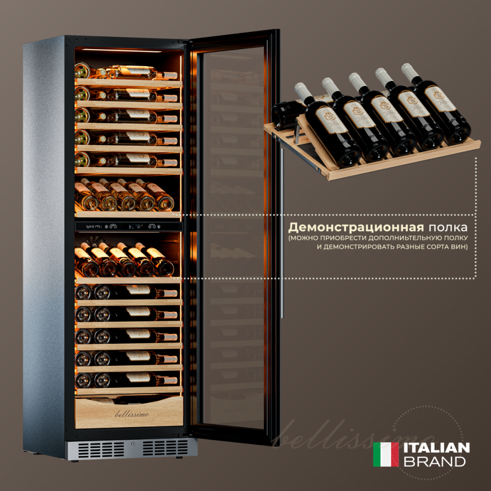 - Панорамное освещение для максимальной демонстрации винной коллекции;