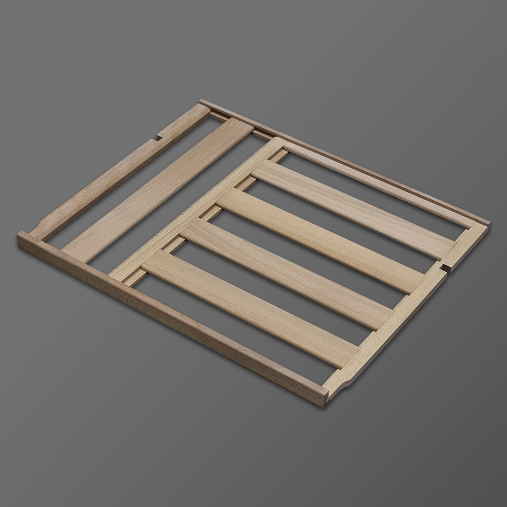 Полки выполнены из массива бука. Этот натуральный и крепкий материал не только имеет красивую текстуру, но и прекрасно гасит небольшую вибрацию. Так что Ваше вино будет храниться в абсолютном покое.