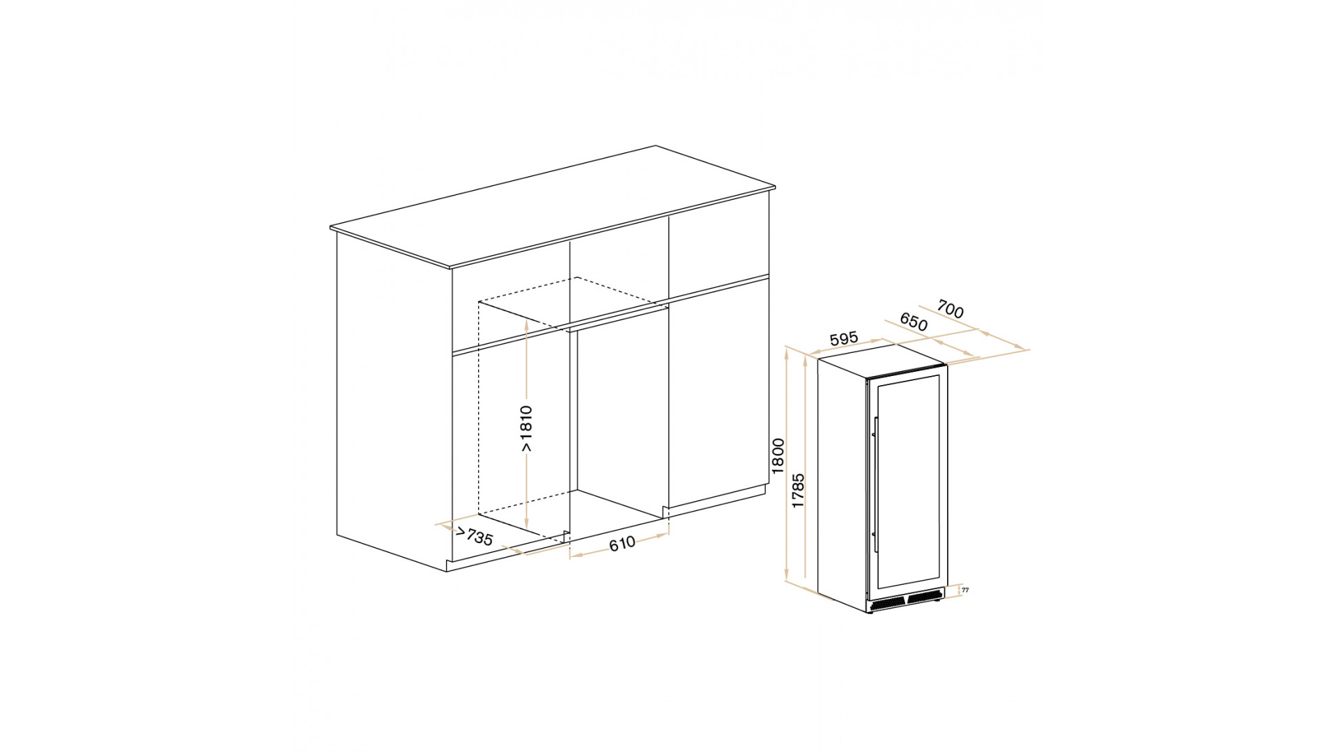MV163PRO-KBT2 может устанавливаться как отдельно, так и встраиваться в нишу. За счёт того, что верхняя петля двери не выступает за пределы корпуса эта модель устанавливается в нишу с минимальными зазорами.