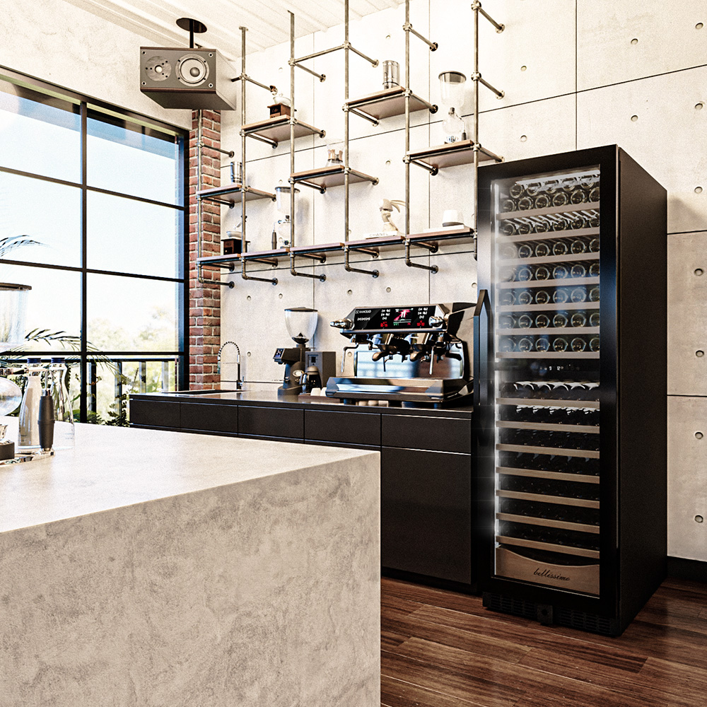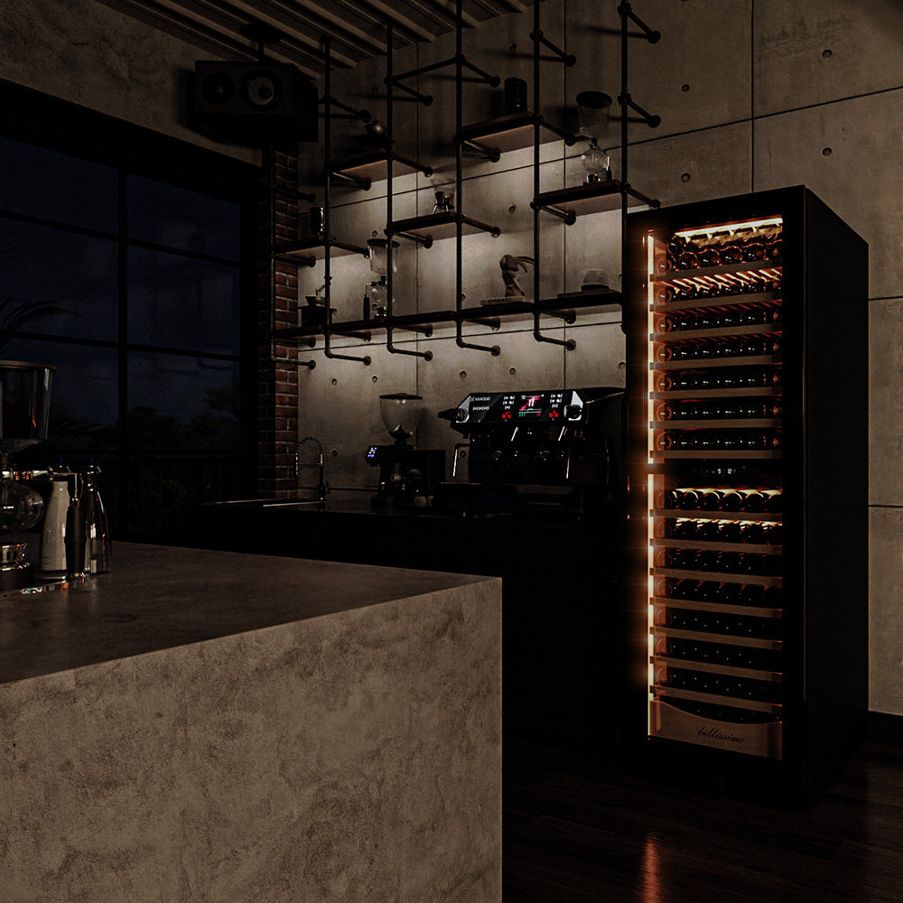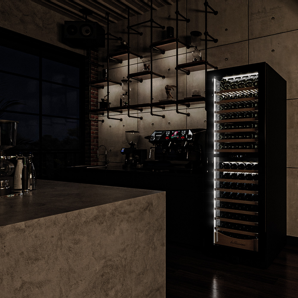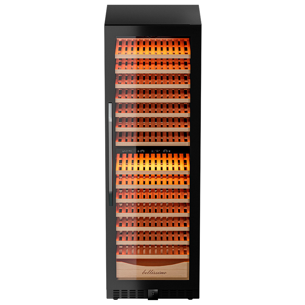 Винный шкаф предназначен для профессионального и длительного хранения различных сортов вин (до 174 бутылок типа Бордо). Он так же оснащен дверью с защитой от ультрафиолетовых лучей и поддерживает влажность в диапазоне 60-80%, как в настоящем винном погребе.