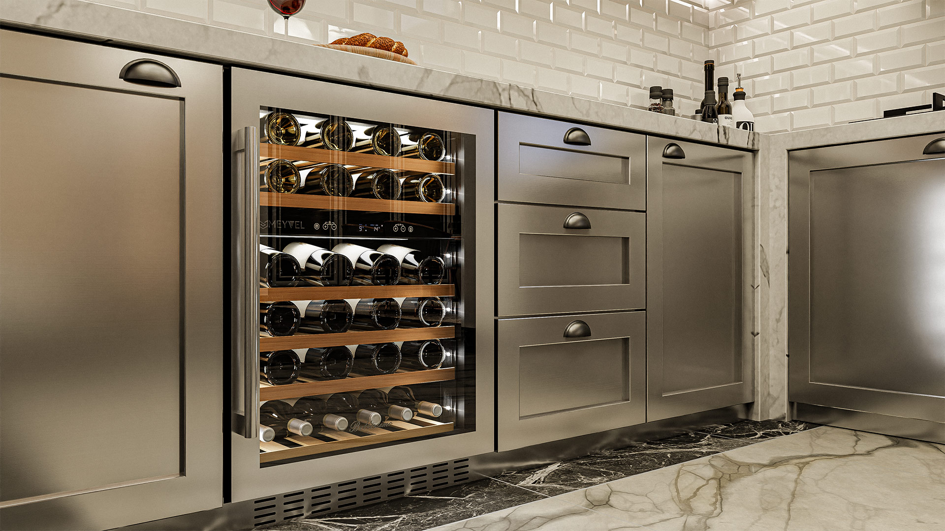 Meyvel MV46PRO-KST2 отлично подходит для расположения на любой кухне. Шкаф можно встроить под столешницу и отрегулировать ножки по высоте, а так же, перенавесить дверь для более удобного использования (петли входят в комплект).