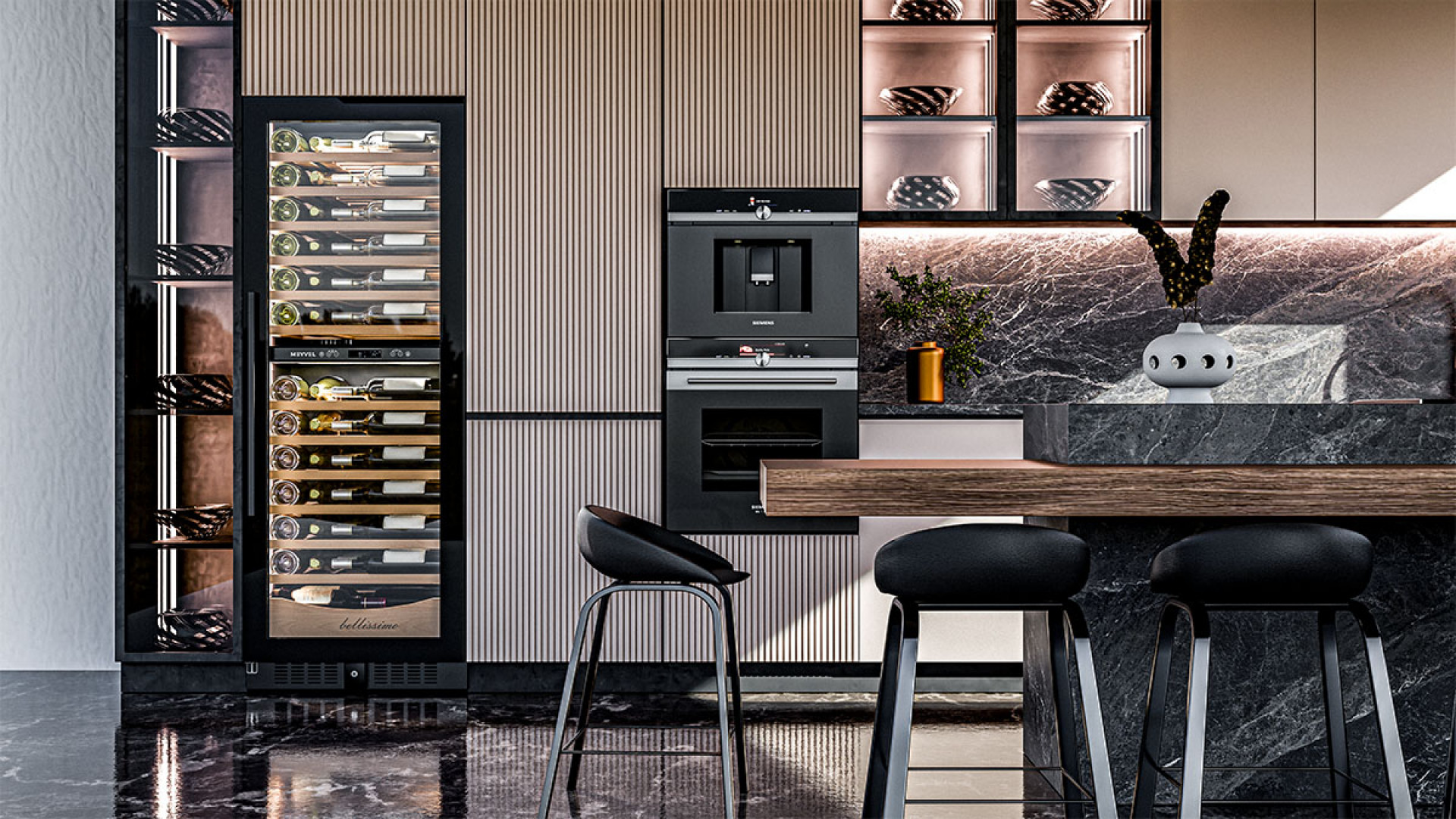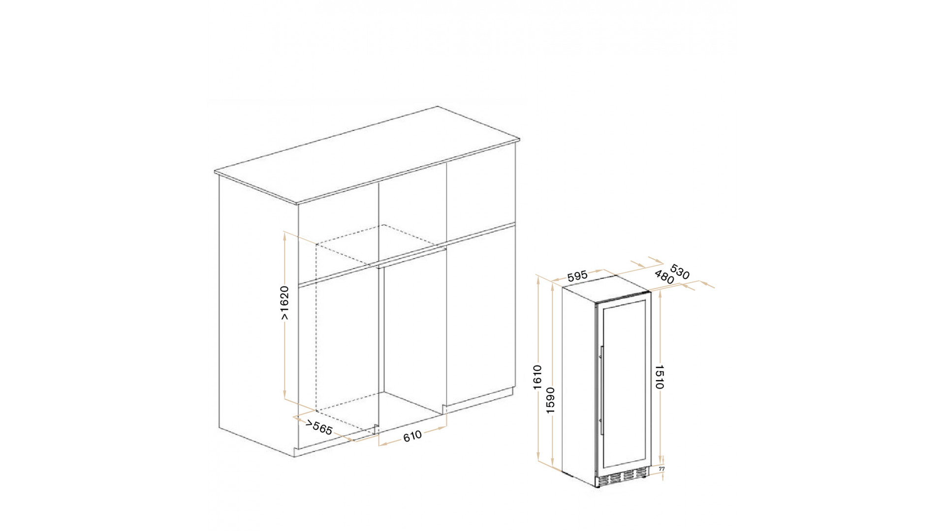 Этот винный холодильник отлично впишется в любой кухонный гарнитур благодаря своим размерам. Это одна из немногих моделей, у которой глубина не превышает глубину кухонной столешницы. Поэтому при установке он не будет выступать за габариты столешницы. (глубина стандартной столешницы 600 мм / глубина винного шкафа 530 мм) .