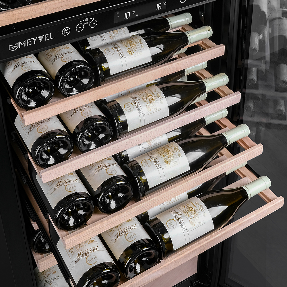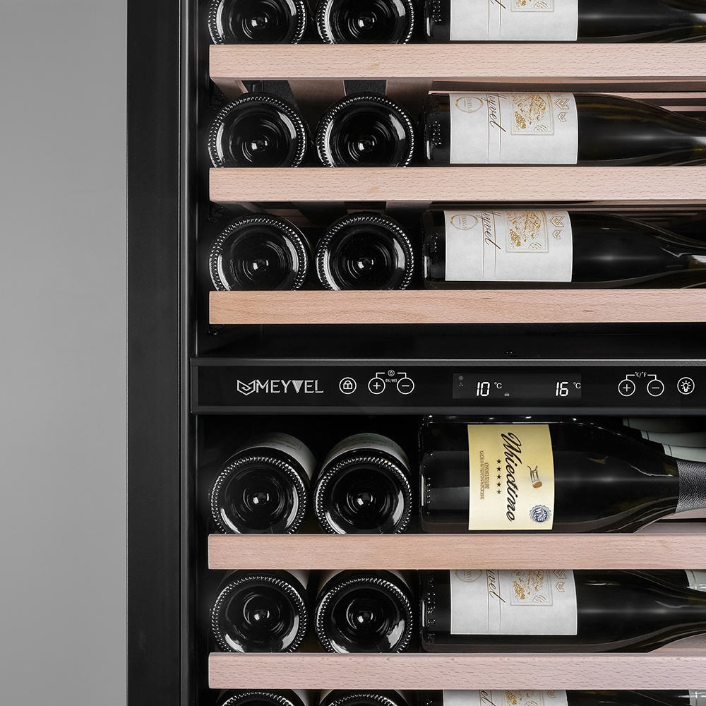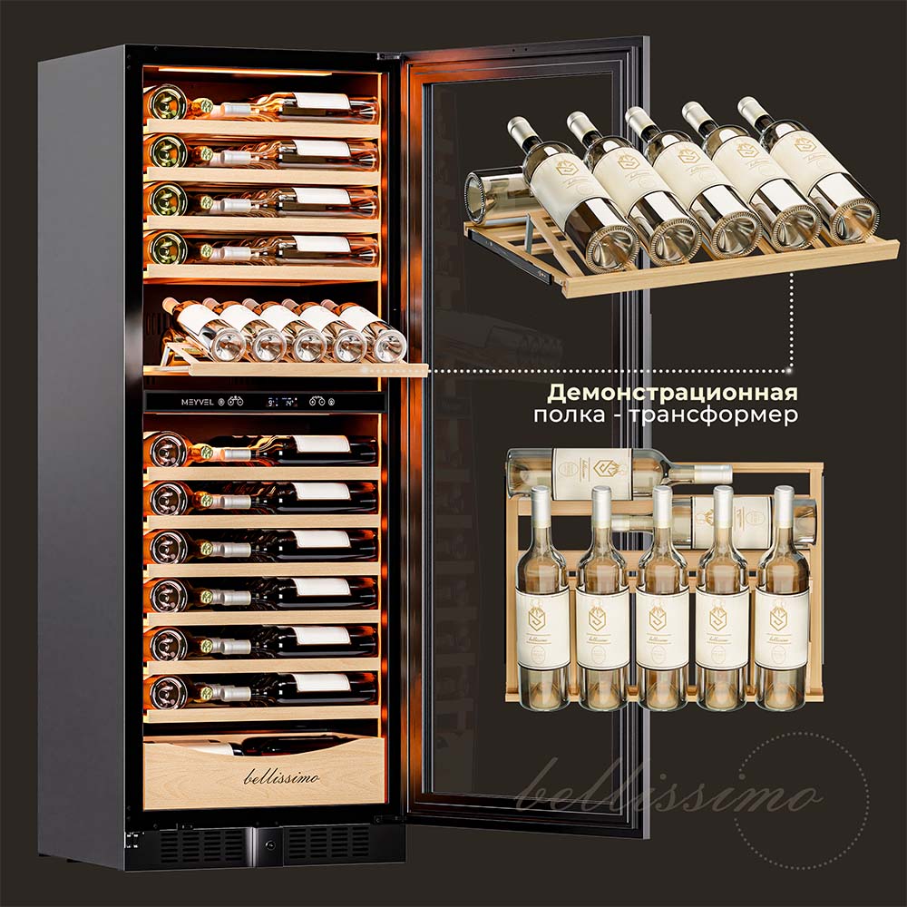 Продвинутый функционал и комплектация винного шкафа MV95-KBT2 (Узкий) (Slim) от итальянского бренда Meyvel создаёт одну из самых высококачественных систем для профессионального и длительного хранения различных сортов вин.