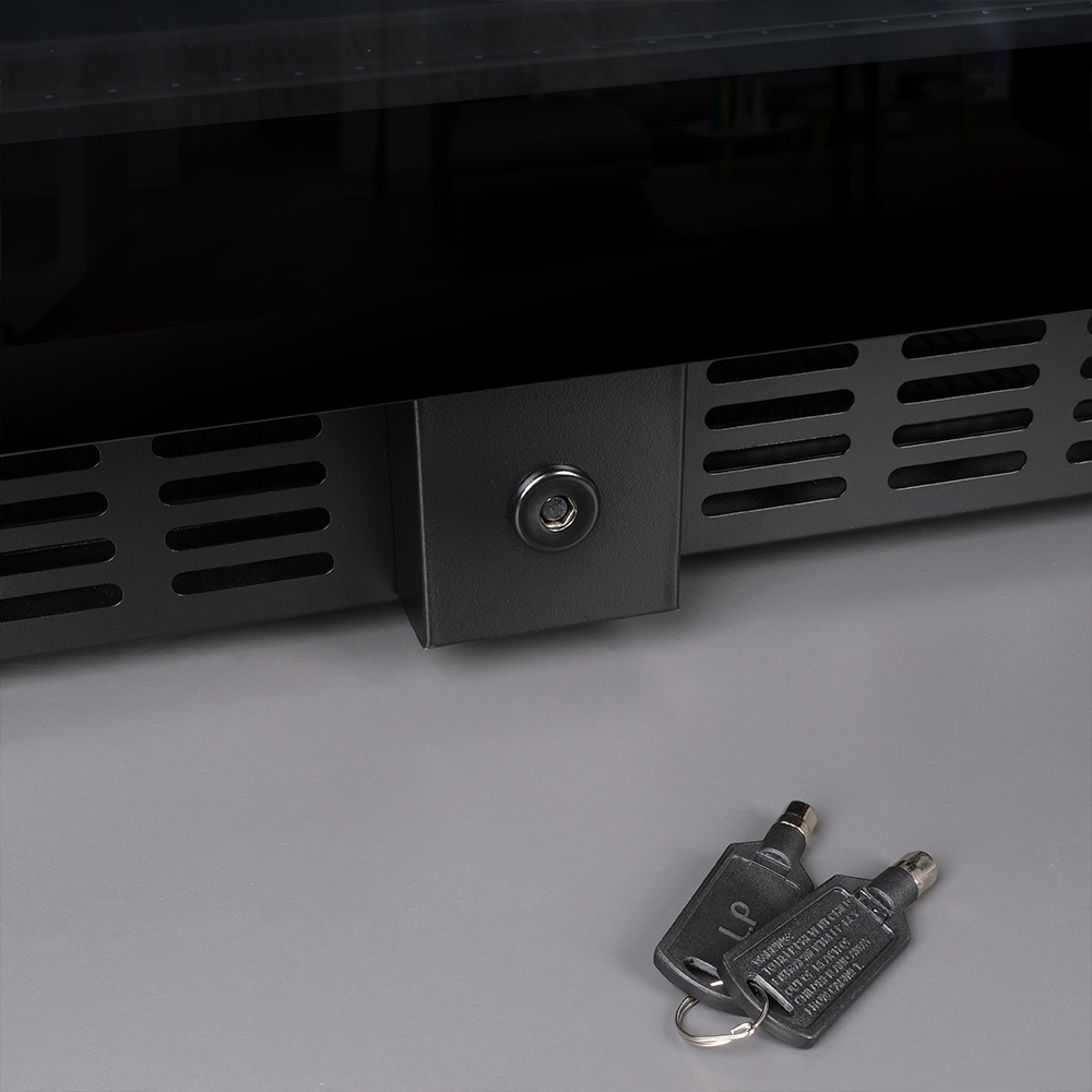 Дверь имеет тройное стекло (максимальная защита), которое задерживает губительные для вина ультрафиолетовые лучи.