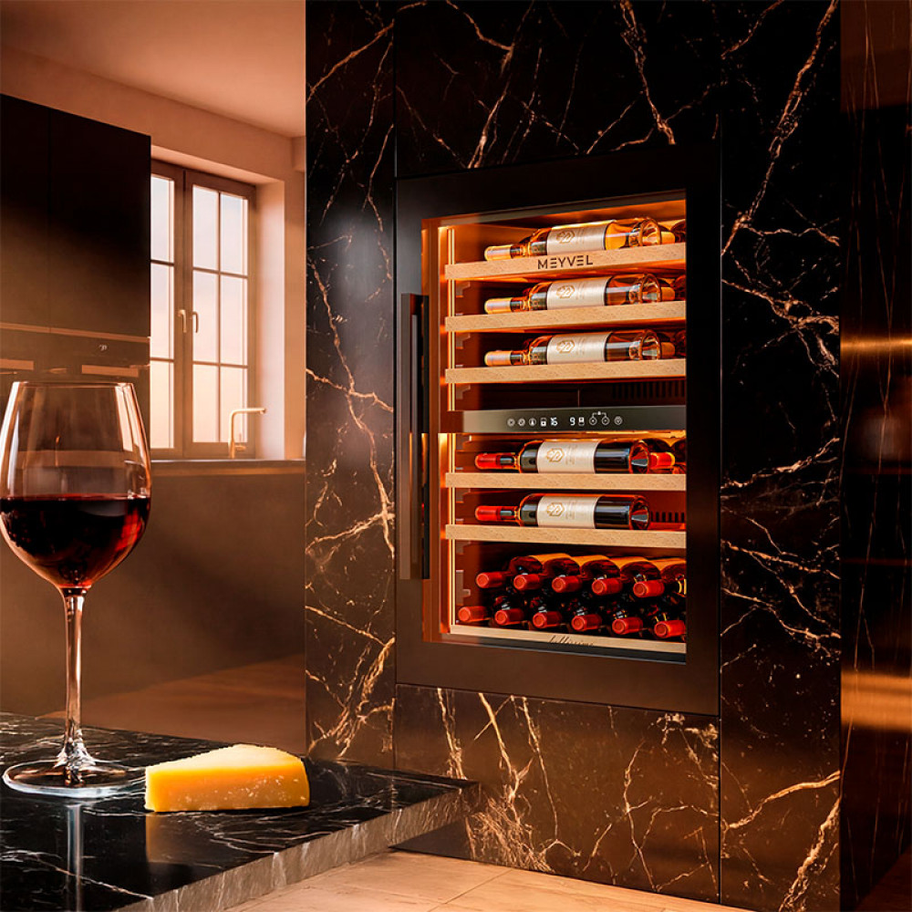 Современные винные шкафы давно перестали быть доступной только профессионалам техникой — сегодня они могут стать частью любого интерьера. Одно из таких продуманных устройств — винный шкаф Meyvel MV47PRO-KBB2, который сочетает технологичность, функциональность и стильный дизайн.