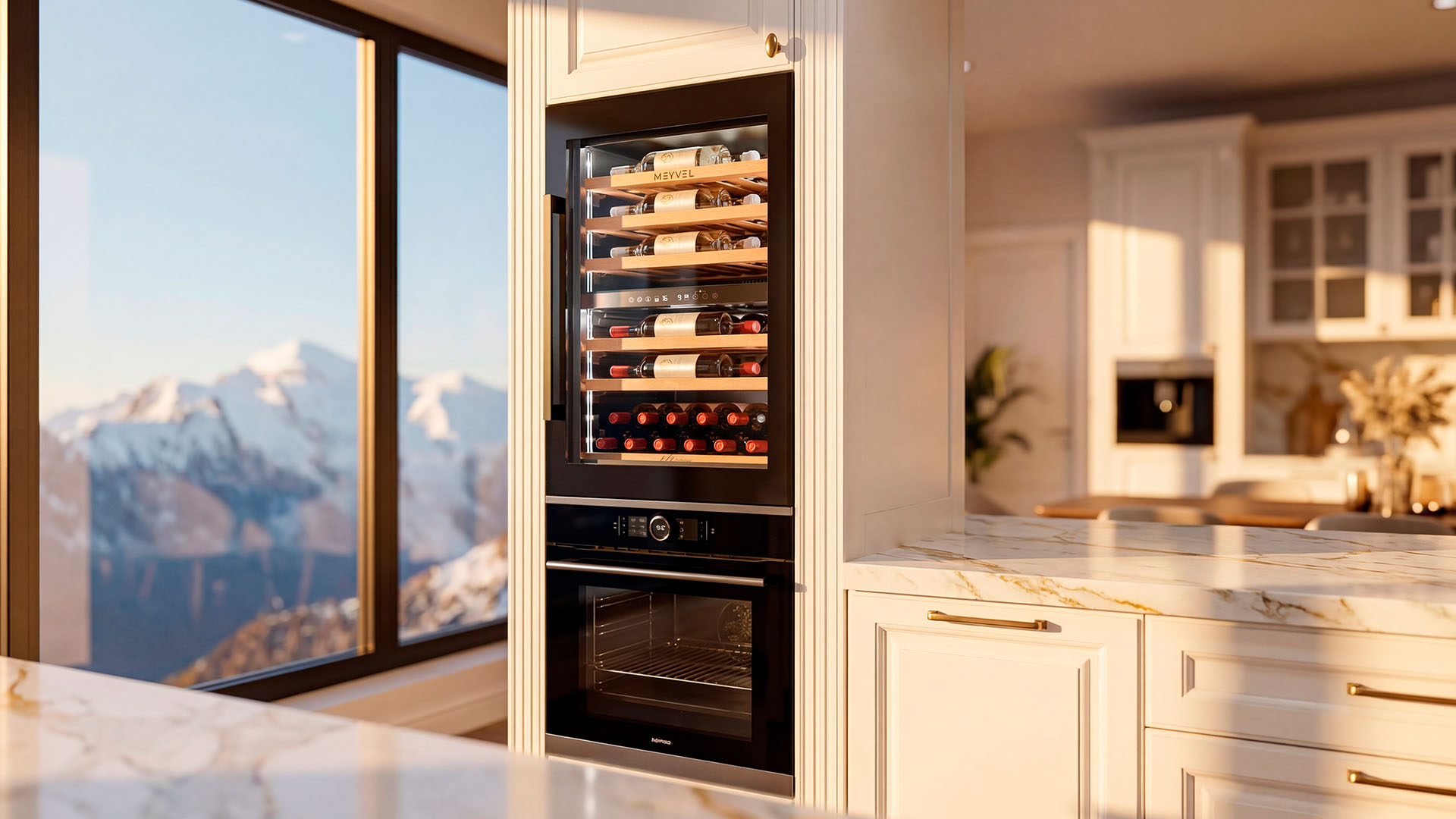 Дополнительный плюс — экономия на производстве мебели: конструкция для встройки обходится дешевле, а изготовить её проще. При этом сам винный шкаф работает лучше, температура держится стабильнее, а холод равномерно распределяется, создавая действительно правильные условия хранения.