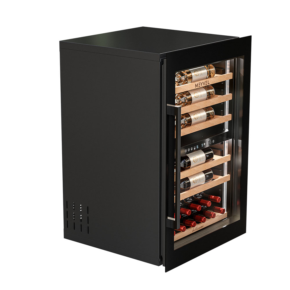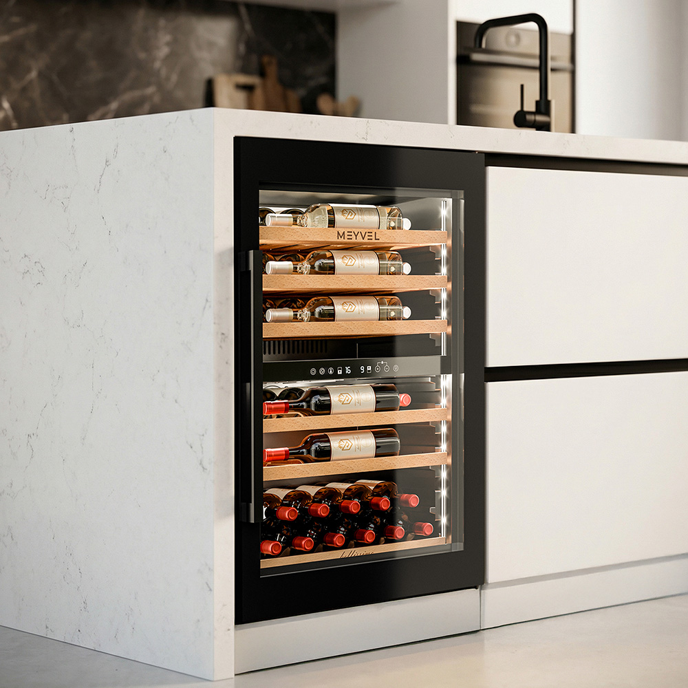 Винный шкаф Meyvel MV47PRO-KBB2 разработан так, чтобы легко вписываться в разные пространства. Его можно встроить в колонну или установить под столешницу, что особенно ценно для кухонь и гостиных в современном стиле. При необходимости высота корректируется благодаря регулируемым ножкам, так что идеальный уровень реален даже на неровной поверхности.