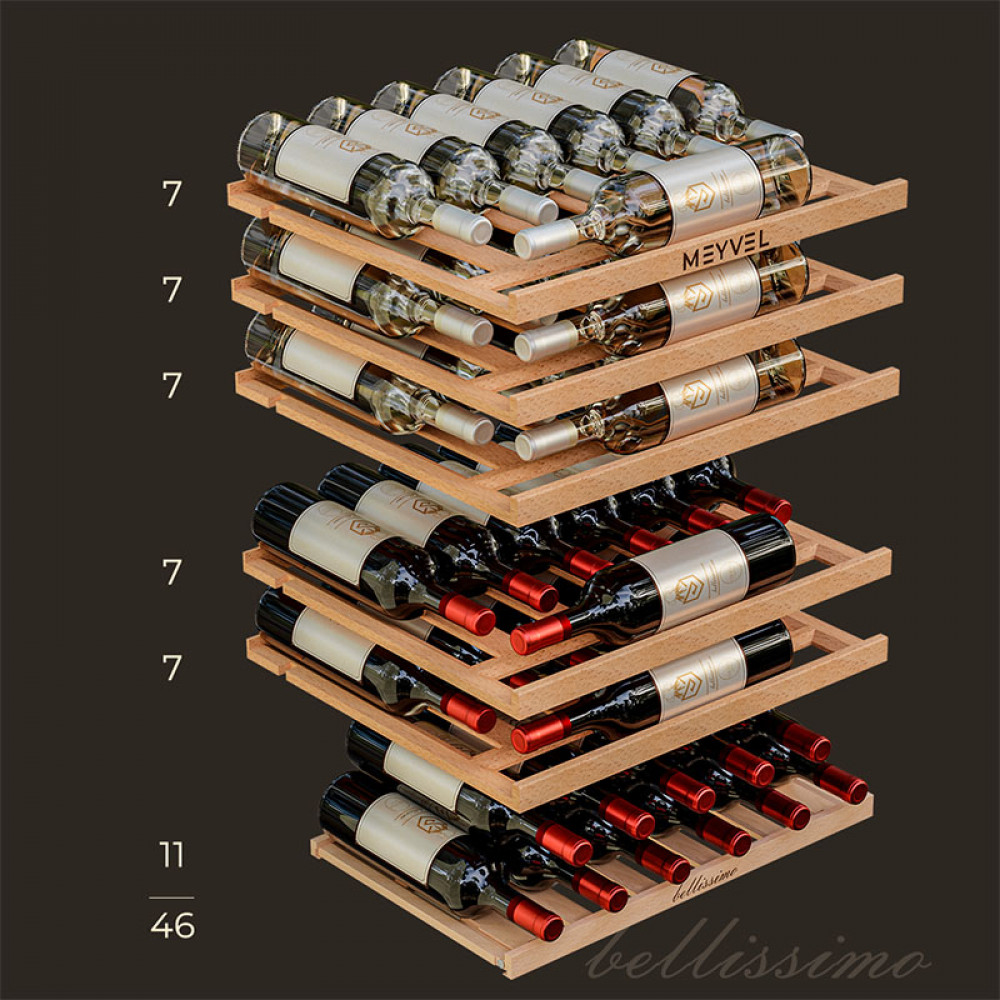 Модель MV47PRO-KBB2 рассчитана на 46 бутылок формата «Бордо» (но есть и полка для нестандартных бутылок). Для их размещения предусмотрены пять полок из натурального бука. Дерево выбрано не случайно: оно гасит вибрации, не накапливает посторонние запахи и создаёт благоприятную среду для вина. А благодаря компактности, устройство отлично подойдёт и для небольшой коллекции в уютном ресторане, и для домашнего бара. Ещё одна особенность этого винного шкафа — полка-трансформер, которую можно использовать как для простого хранения, так и для демонстрации напитков.