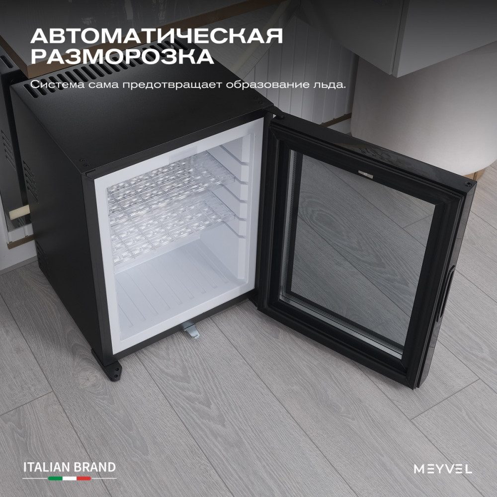 Мини-бар Meyvel MMA-30BG — это сочетание удобства, продуманного дизайна и современных технологий. Модель может быть как отдельностоящей, так и встраиваемой. Первый вариант предоставляет свободу размещения – его можно поставить в любом удобном месте, будь то гостиничный номер, офис, спальня или кабинет руководителя. Второй означает, что устройство получится аккуратно установить в нише мебели или под столешницей, скрыв от глаз и сэкономив пространство.
