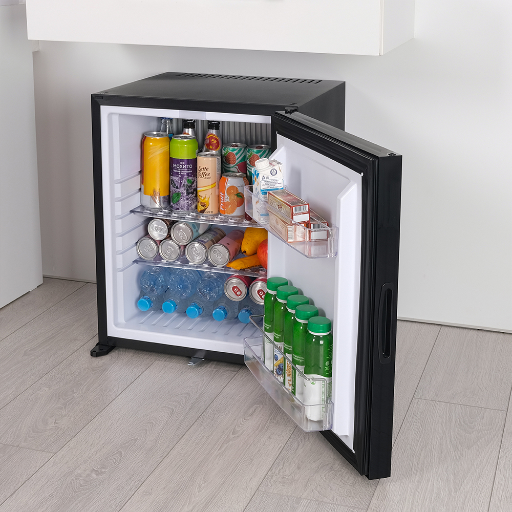 В абсорбционной системе охлаждения отсутствуют движущиеся части, поэтому прибор работает бесшумно, что важно для гостиниц, спален и офисов, где тишина играет важную роль. Мини-бар не создает вибраций и издает неприятных звуков, не нарушая сон или рабочую атмосферу.