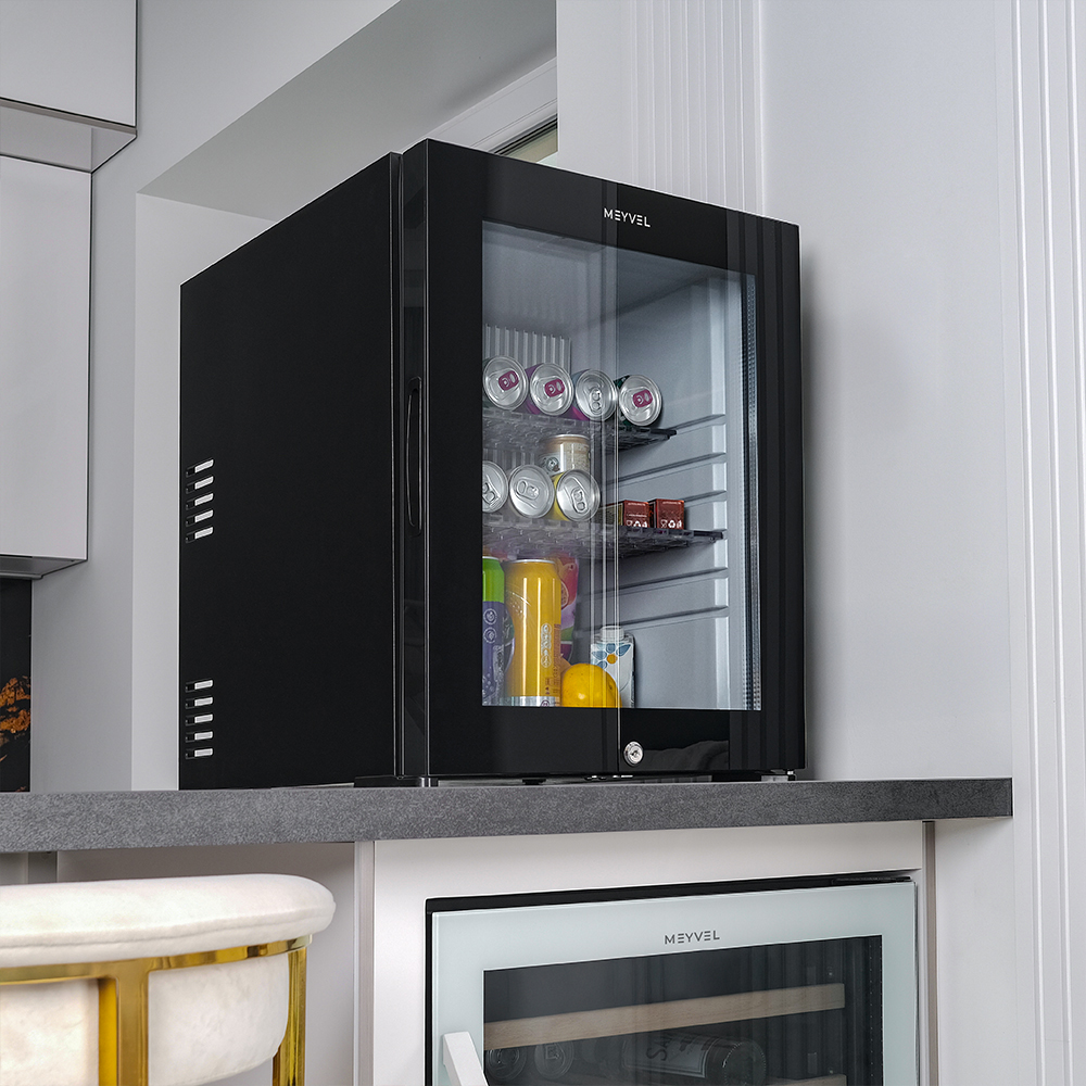 Мини-бар Meyvel MMA-50BG — это сочетание удобства, продуманного дизайна и современных технологий. Модель может быть как отдельностоящей, так и встраиваемой. Первый вариант предоставляет свободу размещения – его можно поставить в любом удобном месте, будь то гостиничный номер, офис, спальня или кабинет руководителя. Второй означает, что устройство получится аккуратно установить в нише мебели или под столешницей, скрыв от глаз и сэкономив пространство.
