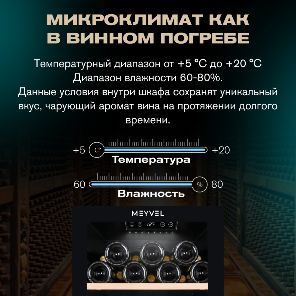 Винный шкаф Meyvel MV105-KBF1 — это сочетание стиля, функциональности и надежности, которое станет надежным помощником в создании винной коллекции.
