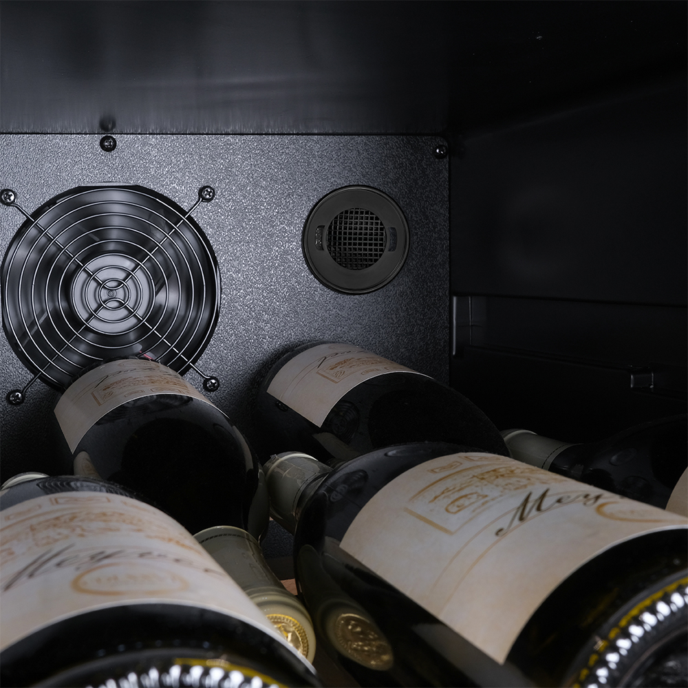 Модель MV105-KBF1 оснащена компрессорной системой охлаждения, которая отличается высокой эффективностью и долговечностью. Компрессор создает холод, путем сжатия хладагента и его последующего расширения, поэтому винный шкаф быстро достигает нужной температуры и стабильно ее поддерживает.