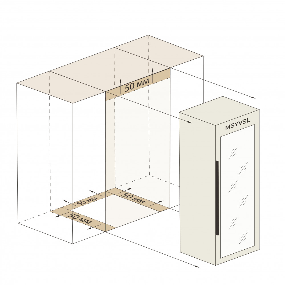 - после установки винного шкафа необходимо проверить, насколько ровно Вы настроили ножки, так как использование винного шкафа, установленного под углом, может привести к поломке дверцы и повышенному шуму при работе.