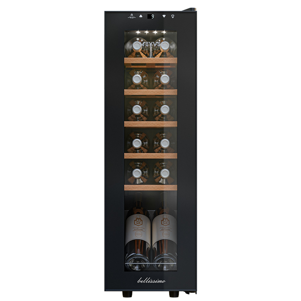 Meyvel MV12-CBF1 — это практичное и элегантное решение для хранения вина в домашних условиях, ресторанах или барах. Он сочетает компактность, современный дизайн и техническую надёжность. В нём предусмотрены все ключевые аспекты: поддержка температуры и влажности, защита от ультрафиолета, бесшумная работа и удобная организация внутреннего пространства.