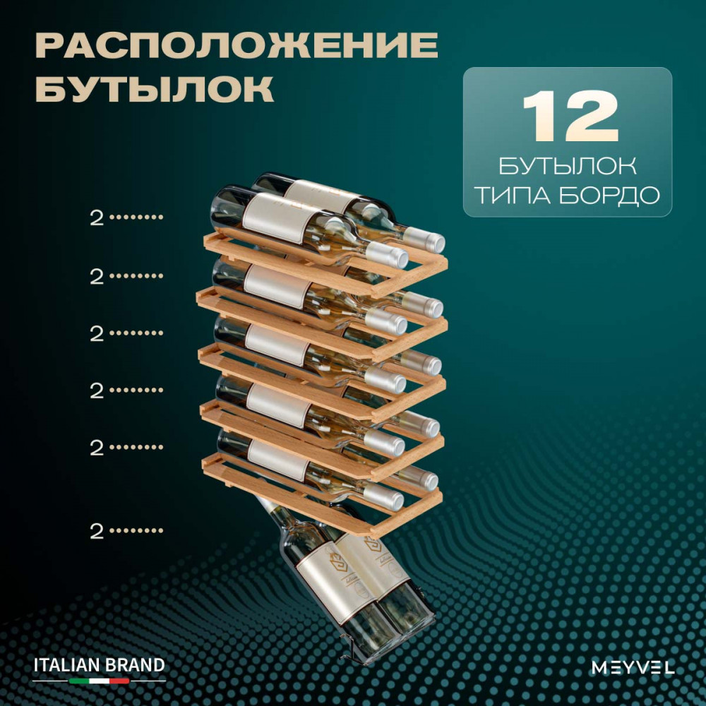 Винный шкаф Meyvel MV12-CBF1 — компактная и технологичная модель, разработанная специально для хранения вина при правильных температуре и уровне влажности. Он совмещает удобство использования с продуманными техническими характеристиками, не требует много места и сложного обслуживания.