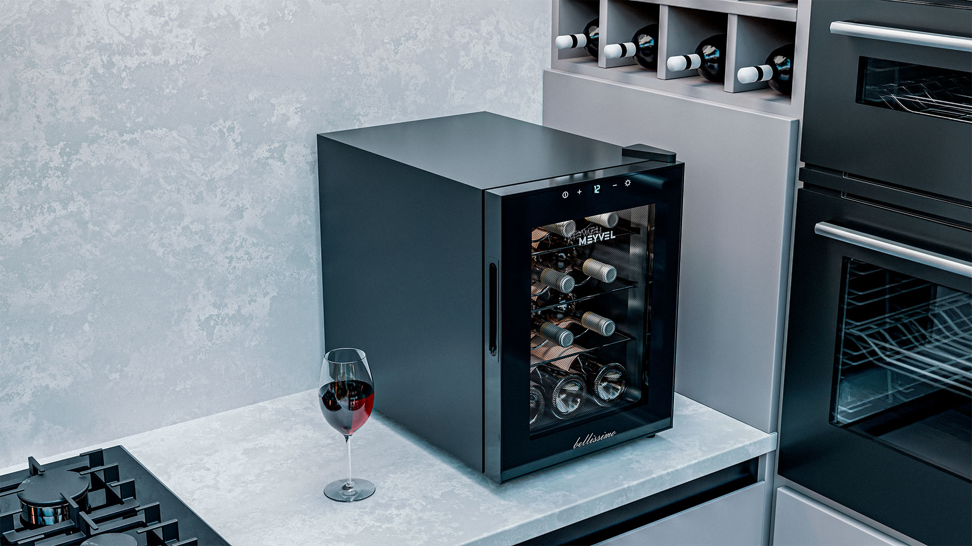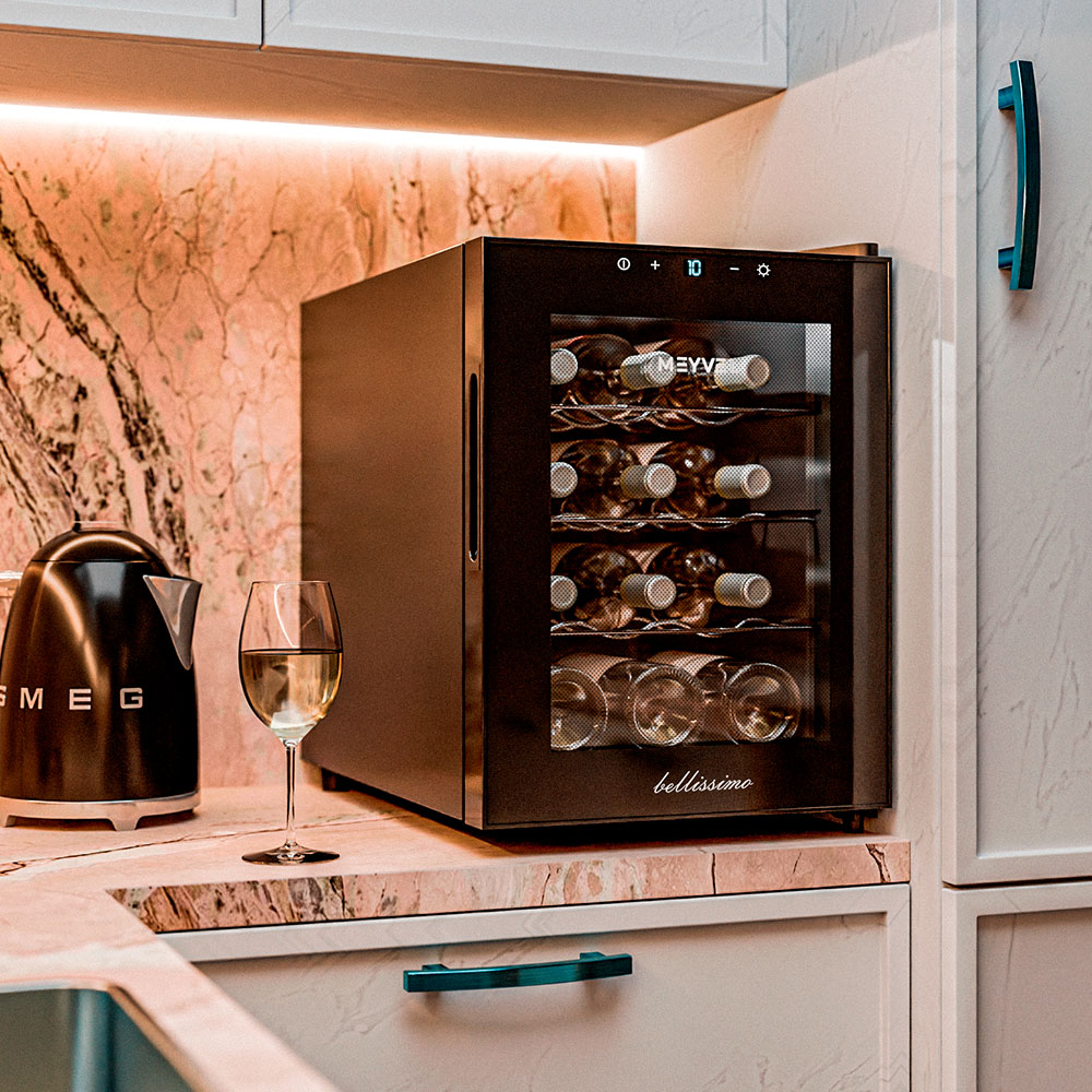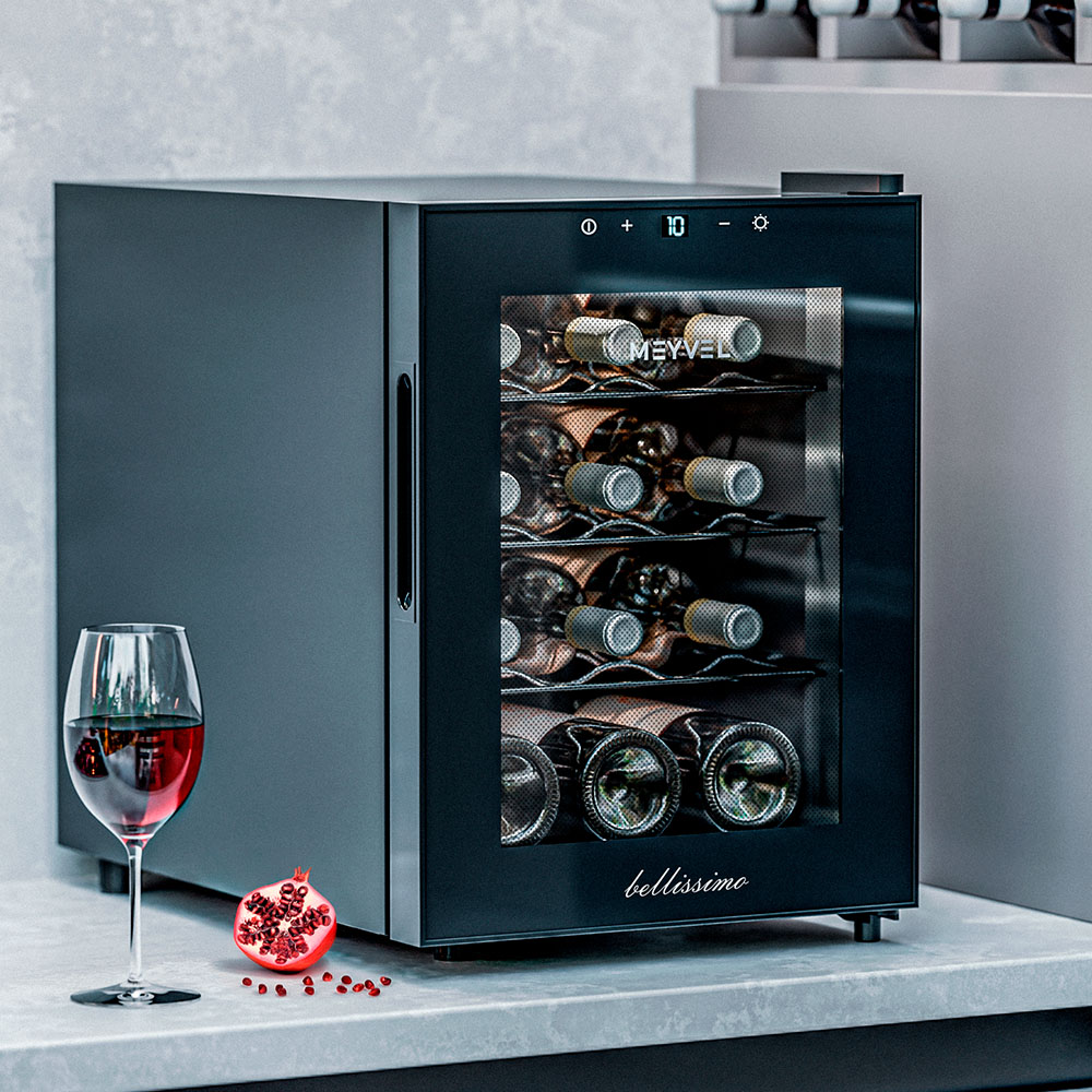 Meyvel MV12-TBF1 — это винный шкаф, рассчитанный на 12 бутылок, а значит, подойдёт не только коллекционерам, но и тем, кто просто любит держать под рукой пару любимых сортов для ужина или праздничного вечера. Благодаря термоэлектрической системе охлаждения он работает тихо, стабильно и не требует сложного обслуживания.