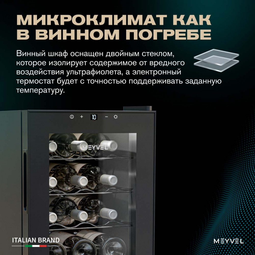 Термоэлектрический винный шкаф Meyvel MV12-TBF1 для дома и небольших коллекций