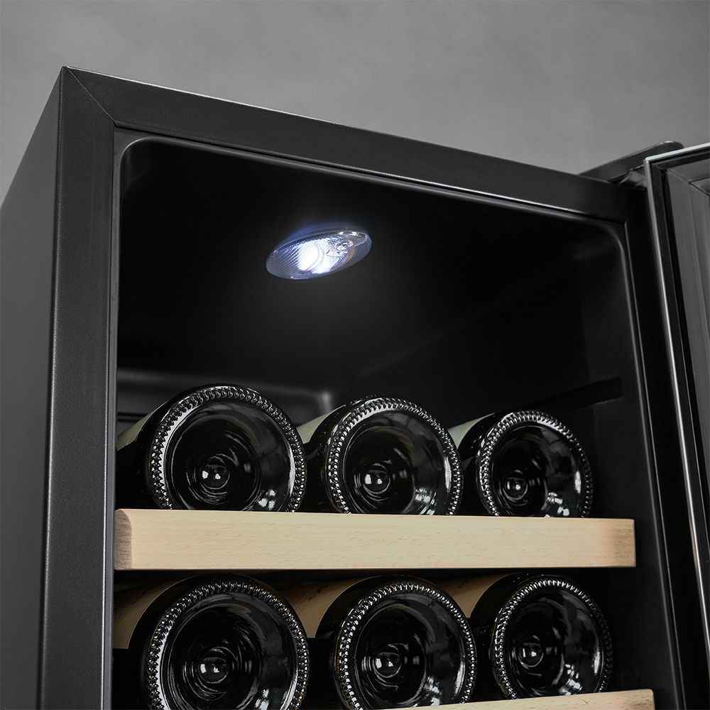 Двойное стекло с защитой от прямых УФ-лучей поддерживает качественные условия хранения вина.