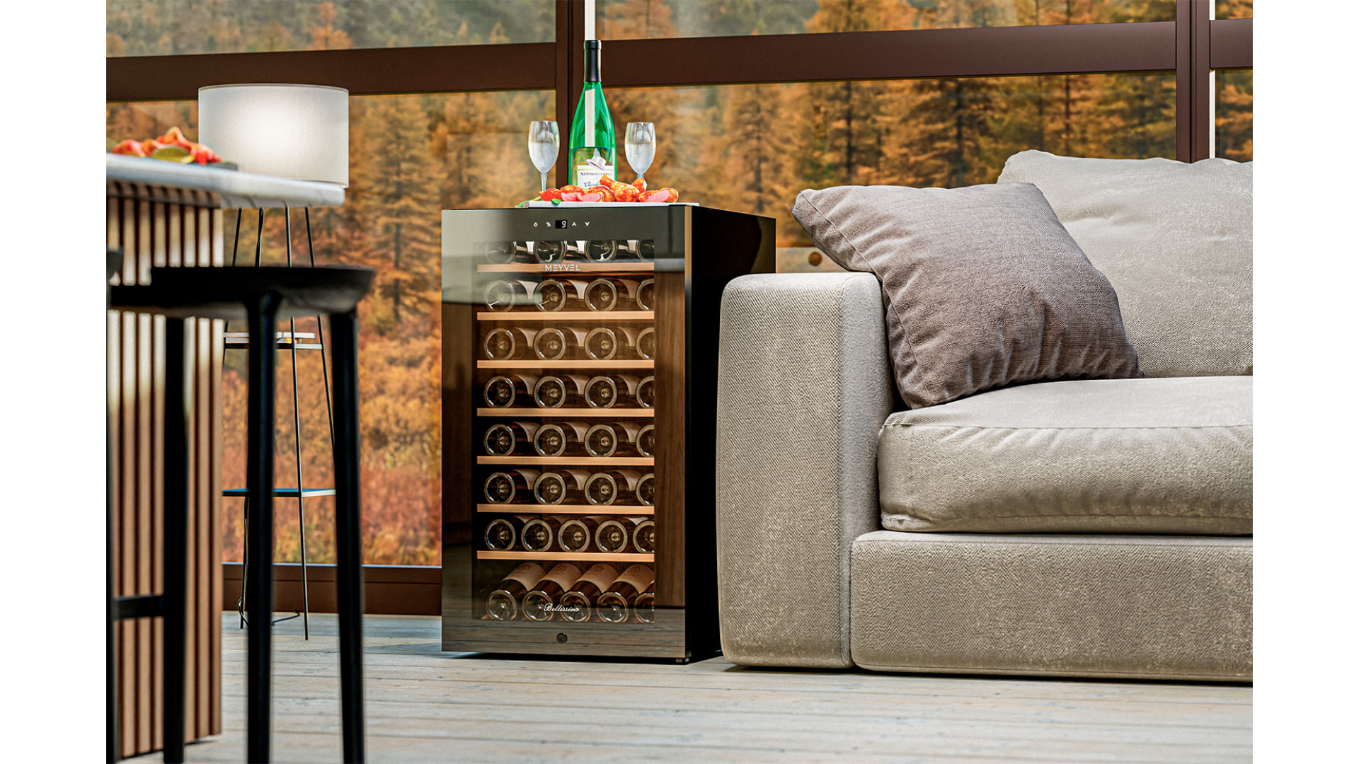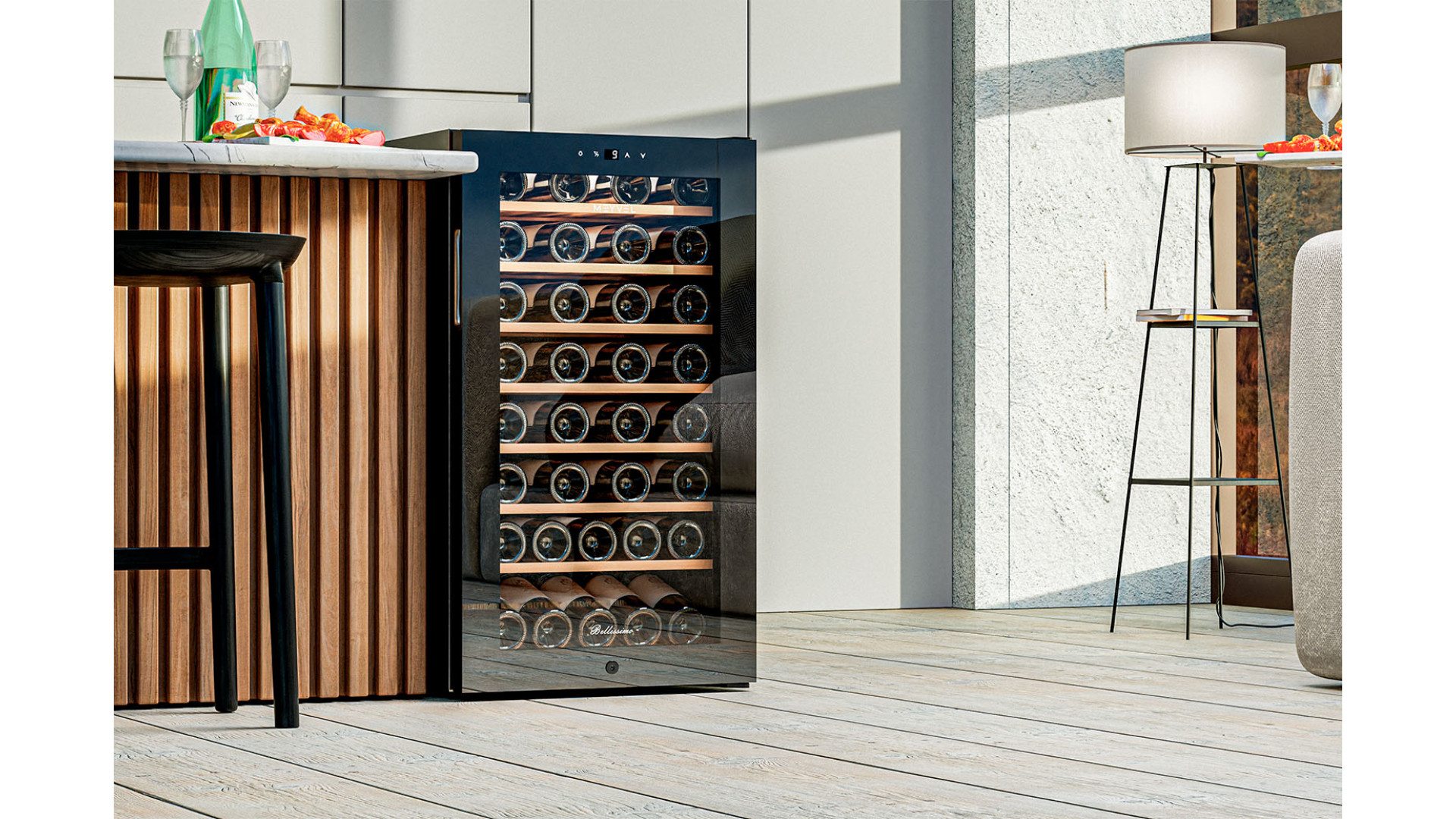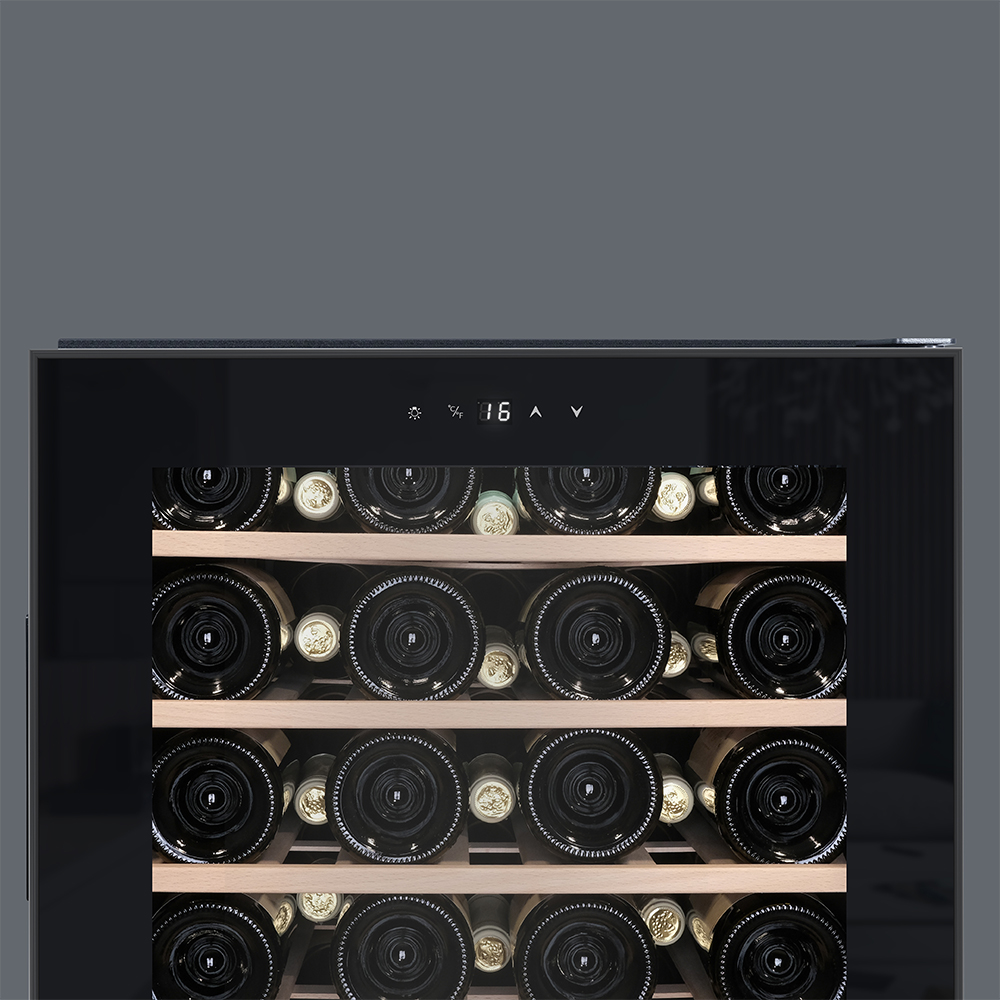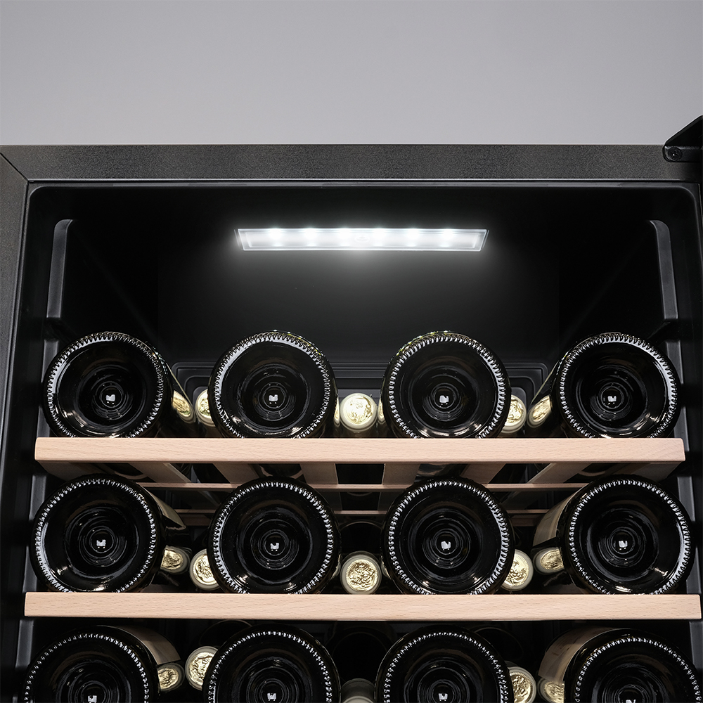 Сенсорное управление позволяет легко установить и поддерживать нужную температуру и влажность. LED-подсветка придает шкафу презентабельный вид и облегчает доступ к его содержимому.