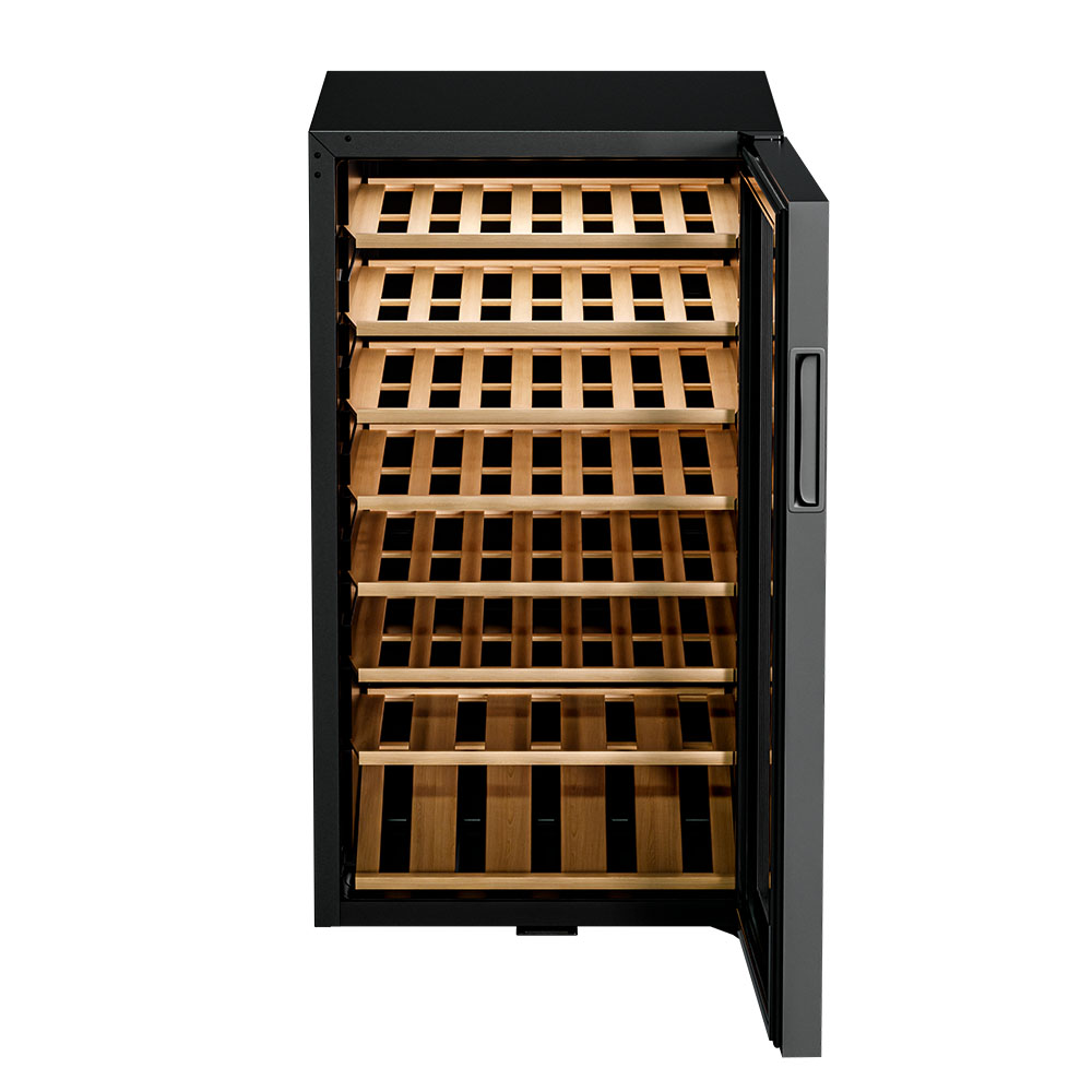 С эффективным типом прямого охлаждения и поддержкой температуры в диапазоне от +5 до +20°C, это устройство содержит вина в оптимальном состоянии. А с влажностью, которая автоматически поддерживается в пределах 60-80%, напитки долго не потеряют свои вкус и аромат. Двойное стекло с УФ-фильтром обеспечивает надежную защиту от пагубных солнечных лучей.