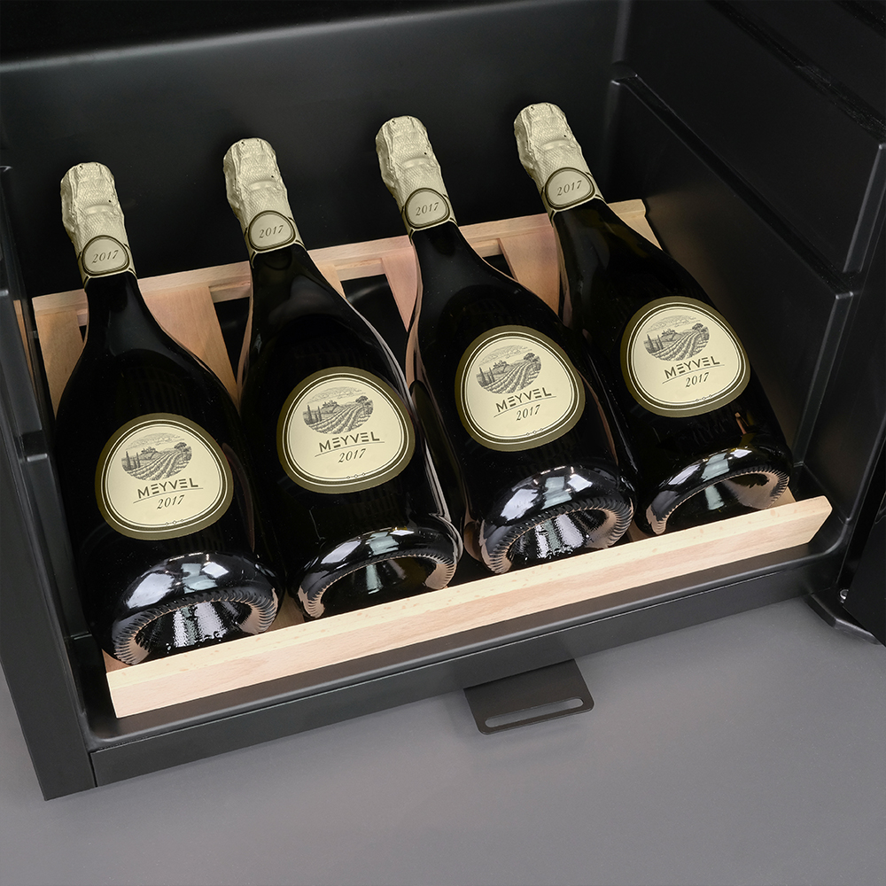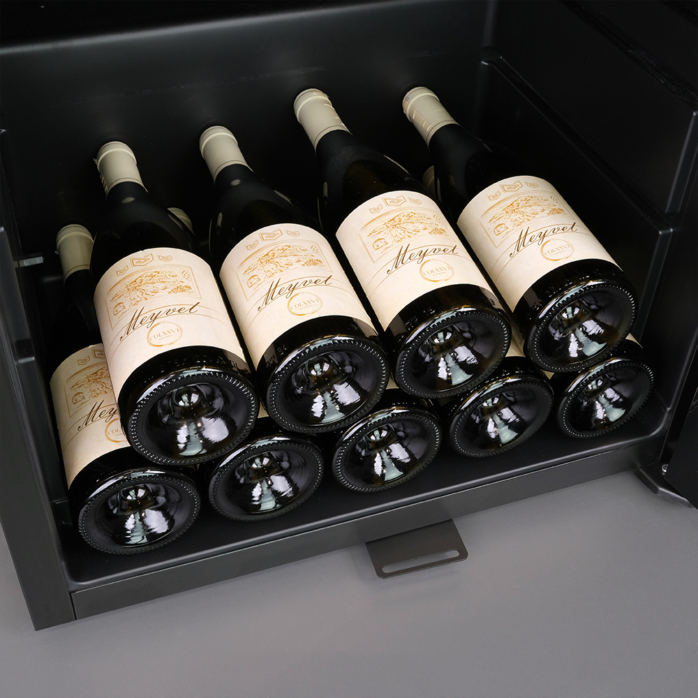 Выдвижные и демонстрационная полки дают возможность грамотно организовать хранение бутылок и создать впечатляющую презентацию вашей коллекции вин.