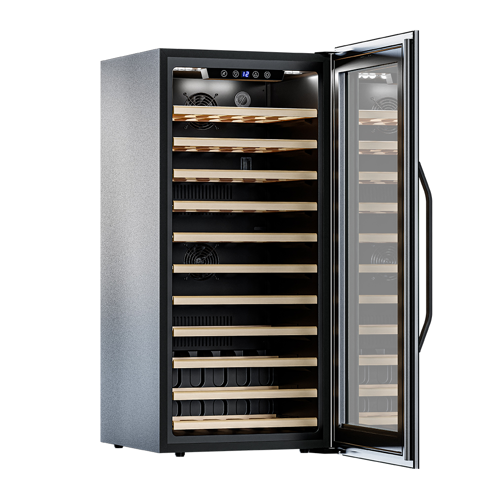 Компрессорный винный шкаф Meyvel MV66-KBB1 обладает большой вместимостью и способен разместить до 66 бутылок. Располагаются они на полках из массива бука. Внутреннее пространство шкафа разделено на 11 полок. Шкаф поддерживает температурный диапазон от +5°C до +18°C. Холодильник поддерживает влажность в диапазоне 60-80%, как в настоящем винном погребе.