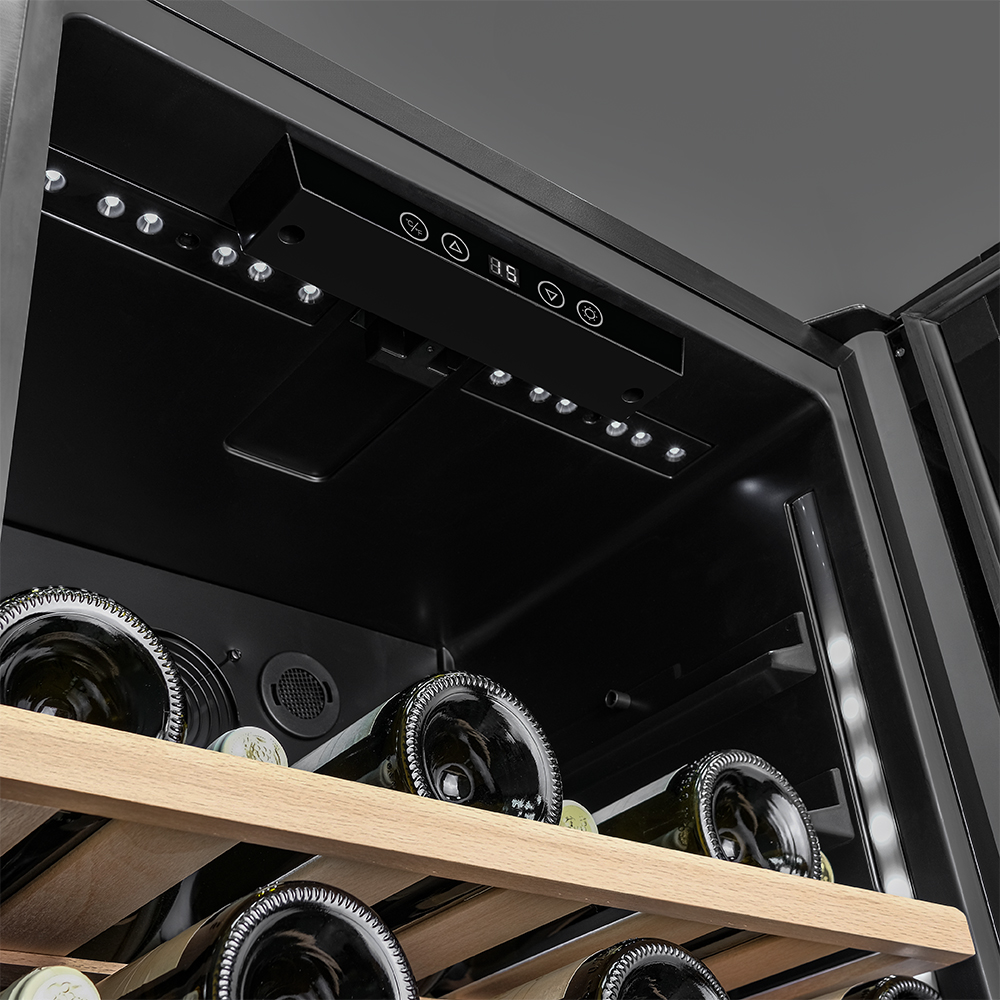 Встраиваемая модель MV66-KBB1 имеет привлекательный внешний вид, сочетающий в себе неподвластное времени очарование натуральных материалов с высокотехнологичными системами сохранения продуктов. Встраиваемый винный холодильник Meyvel MV66-KBB1 оснащен дверью с защитой от ультрафиолетовых лучей и отлично подойдет для хранения и созревания различных сортов вин. Динамическая система охлаждения обеспечивает оптимальную температуру для вина и сохраняет необходимую влажность внутри камеры.
