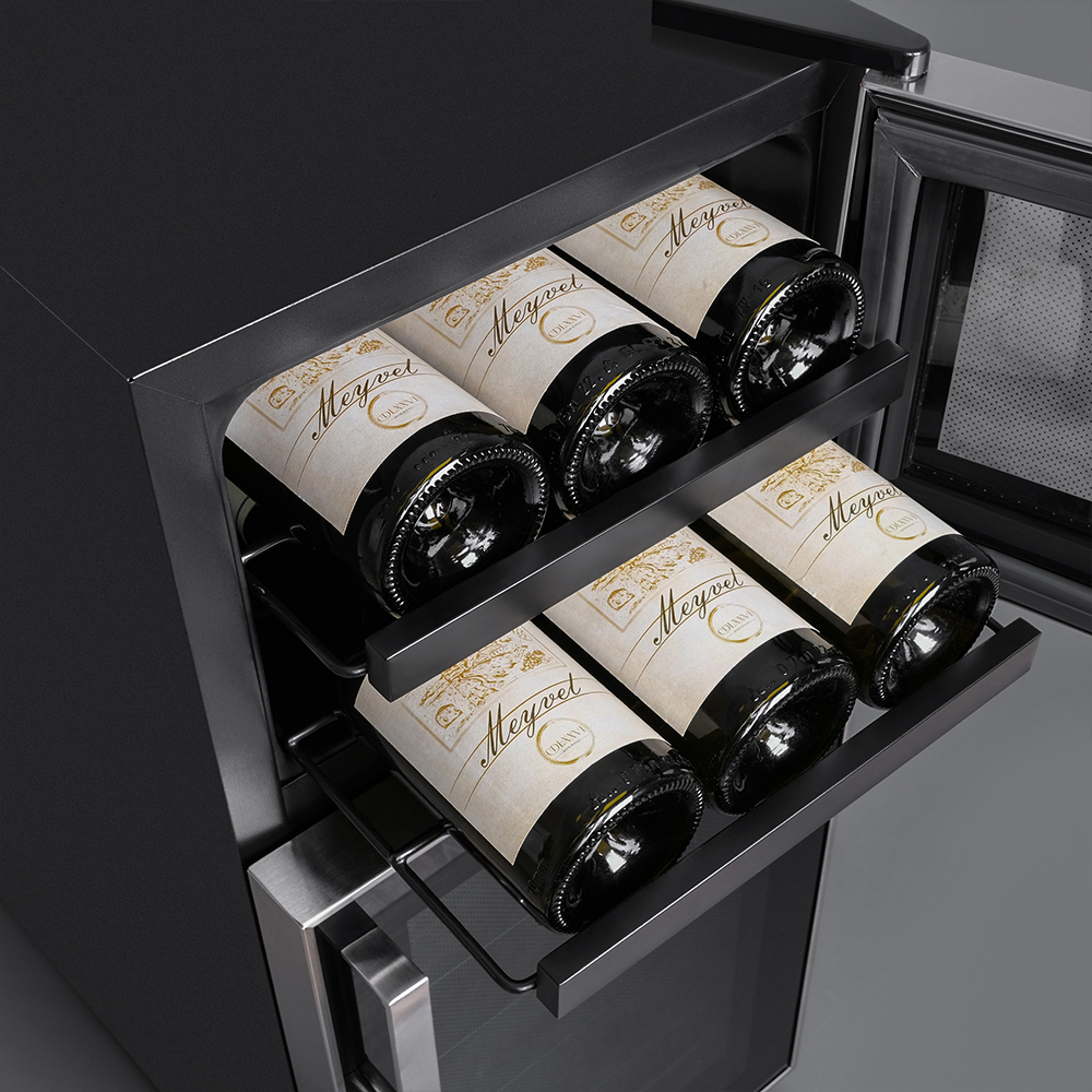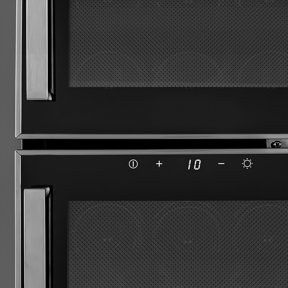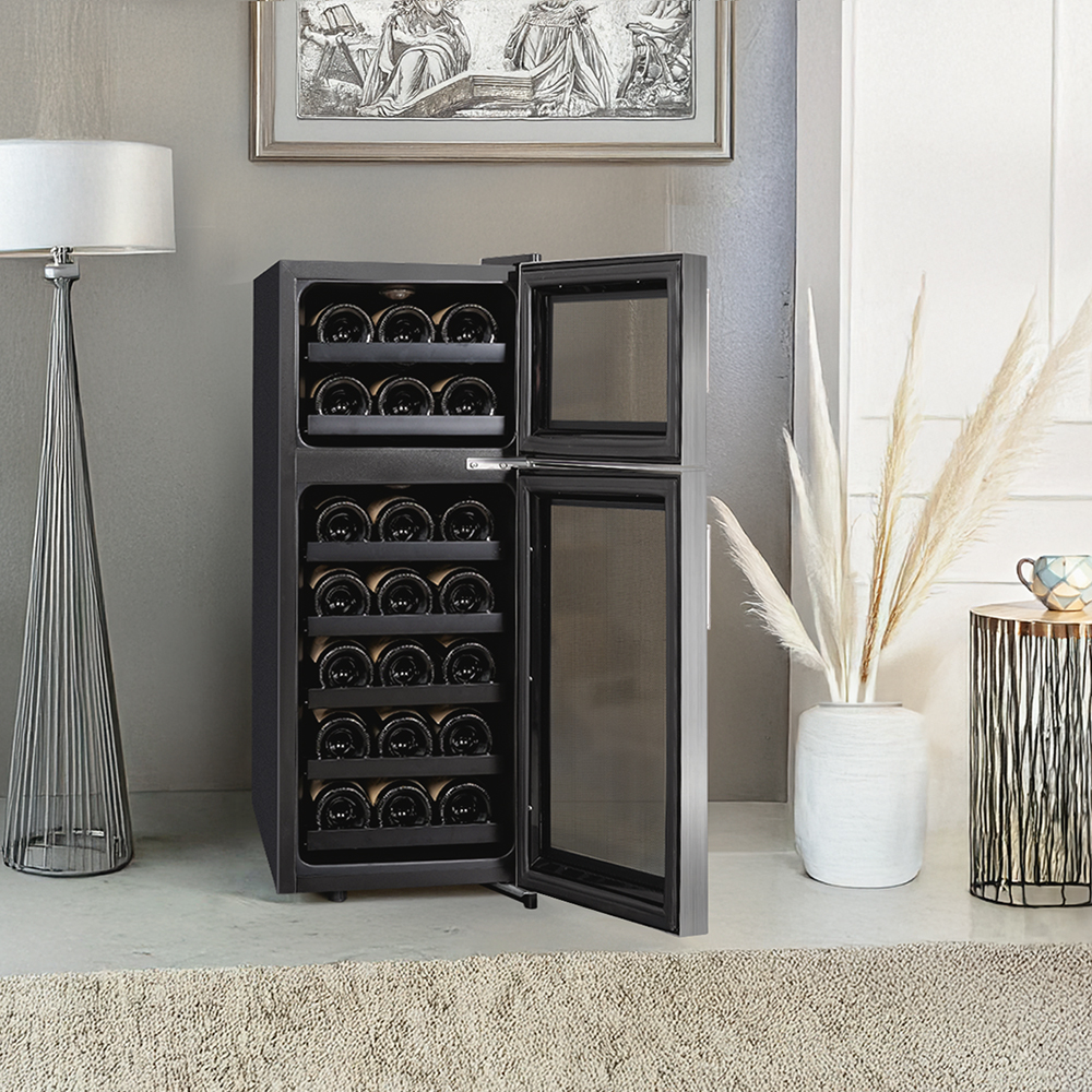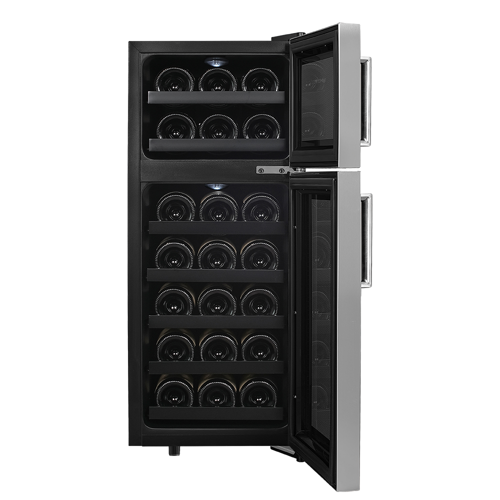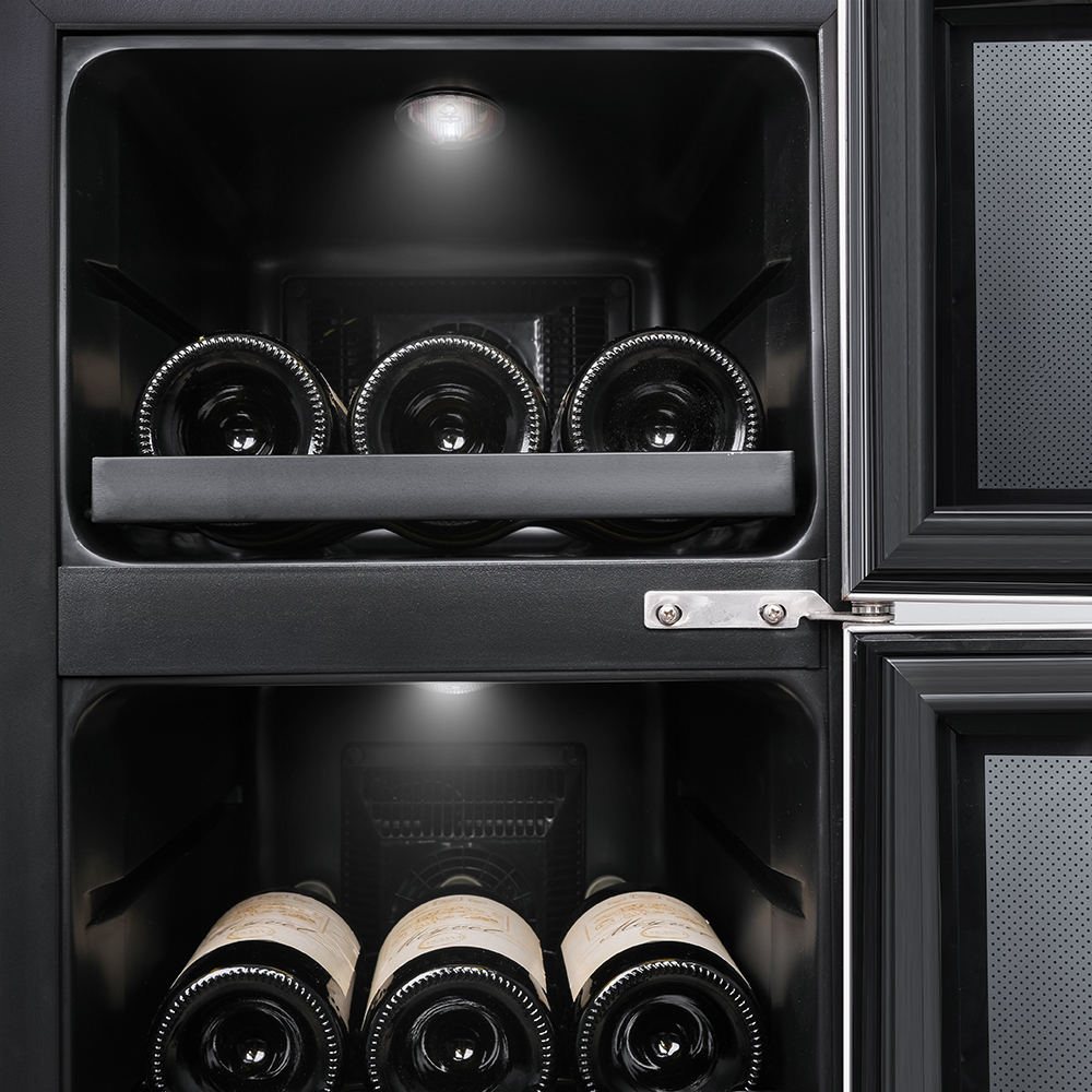 Термоэлектрический винный шкаф имеет две температурные зоны, храните красные и белые вина в одном месте! Данная модель поддерживает необходимый для хранения вин уровень влажности в 50-80%.
