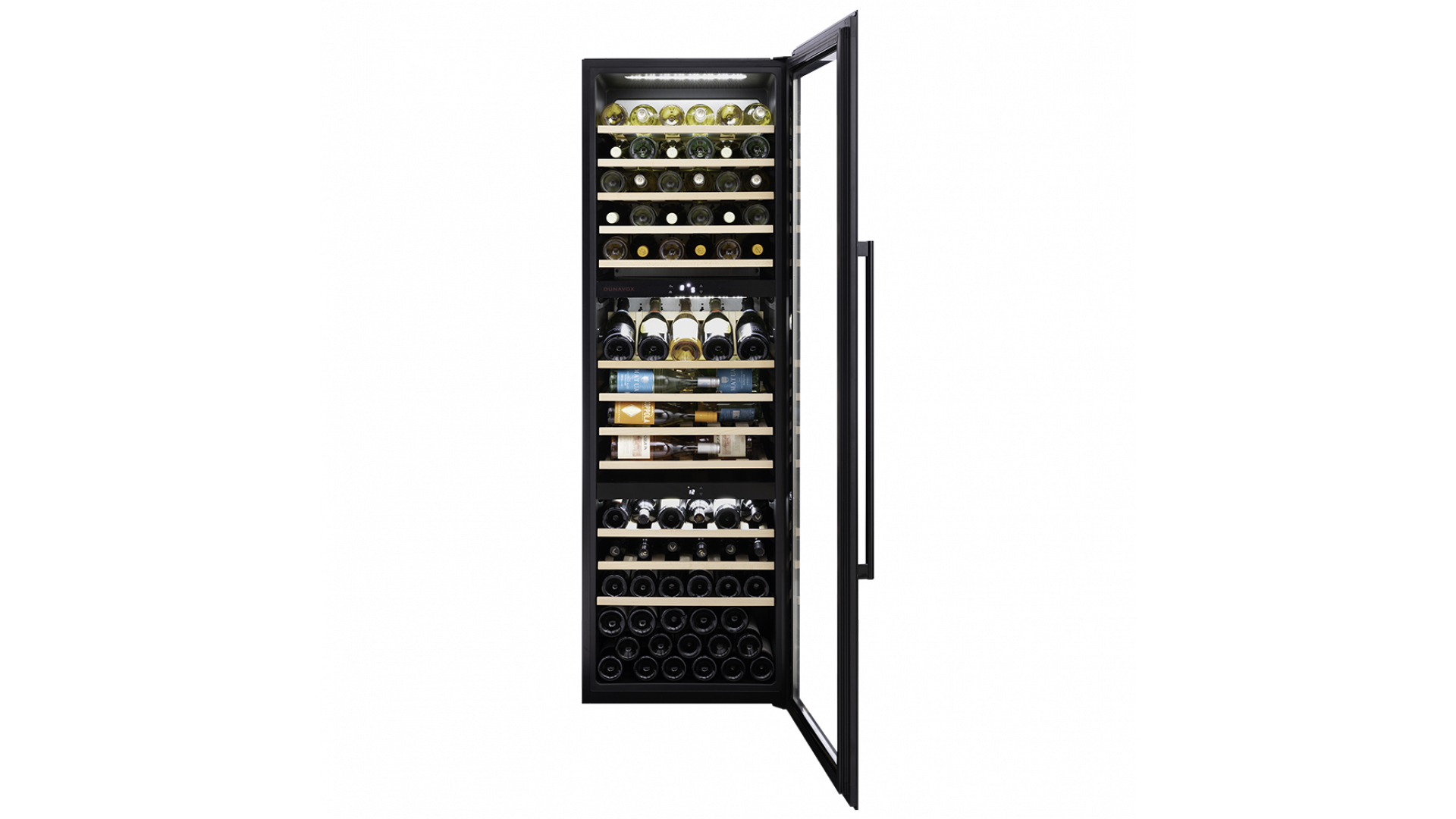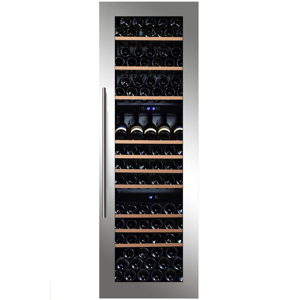 Холодильник для вина нового поколения DX-89.246TSS. Очень вместительная, встраиваемая в нишу модель с тремя температурными зонами и экономным потреблением электроэнергии. Комплектуется десятью деревянными полками.