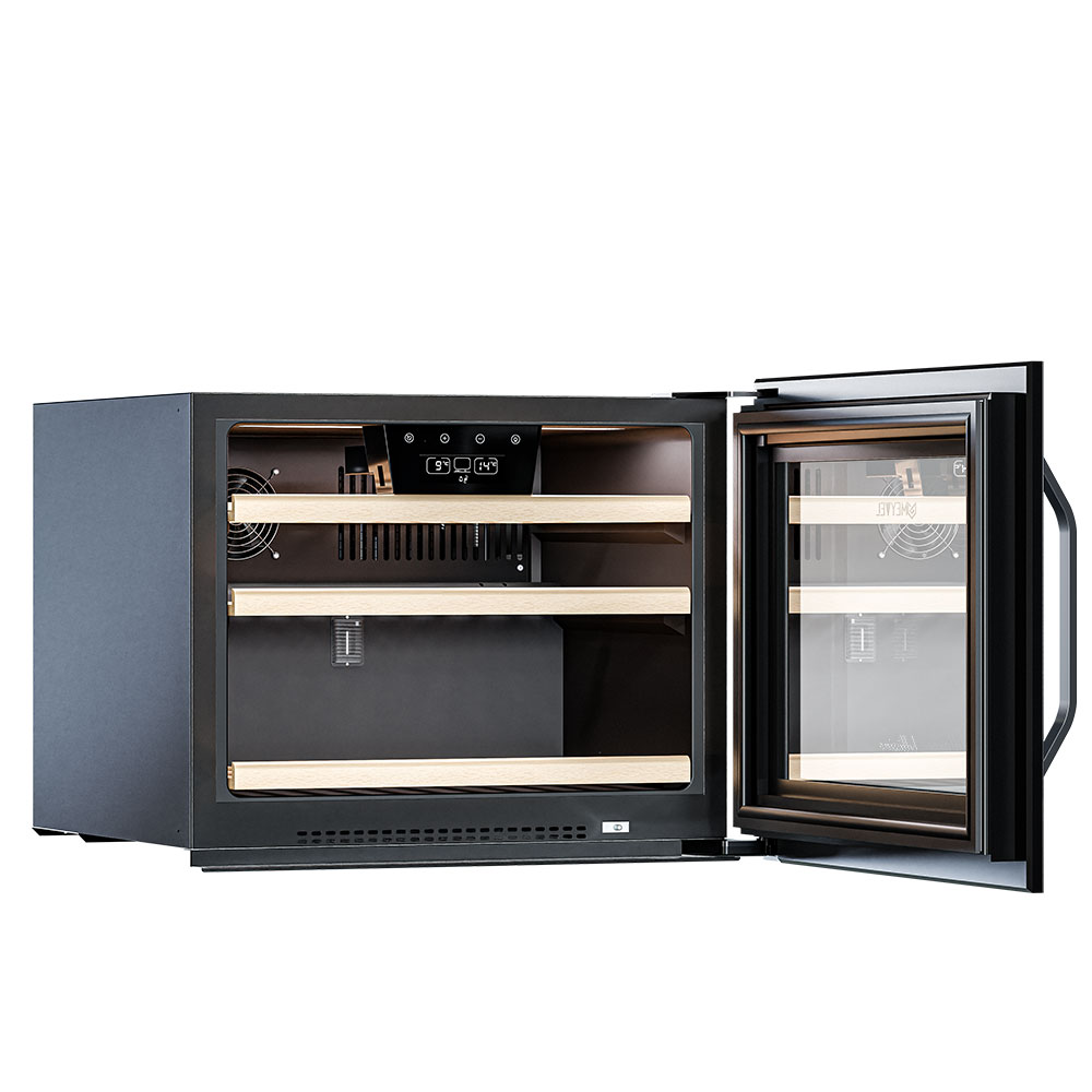 Модель MV22-KSB1 имеет привлекательный внешний вид, сочетающий в себе неподвластное времени очарование натуральных материалов с высокотехнологичными системами сохранения пищевых продуктов. Винный холодильник Meyvel MV22-KSB1 оснащен дверью с защитой от ультрафиолетовых лучей и отлично подойдет для хранения и созревания различных сортов вин. Динамическая система охлаждения обеспечивает оптимальную температуру для вина и сохраняет необходимую влажность внутри камеры. В модели установлен надёжный и экономичный компрессор с уровнем шума до 45 дБ. Гарантирует надёжную работу с низким уровнем шума.