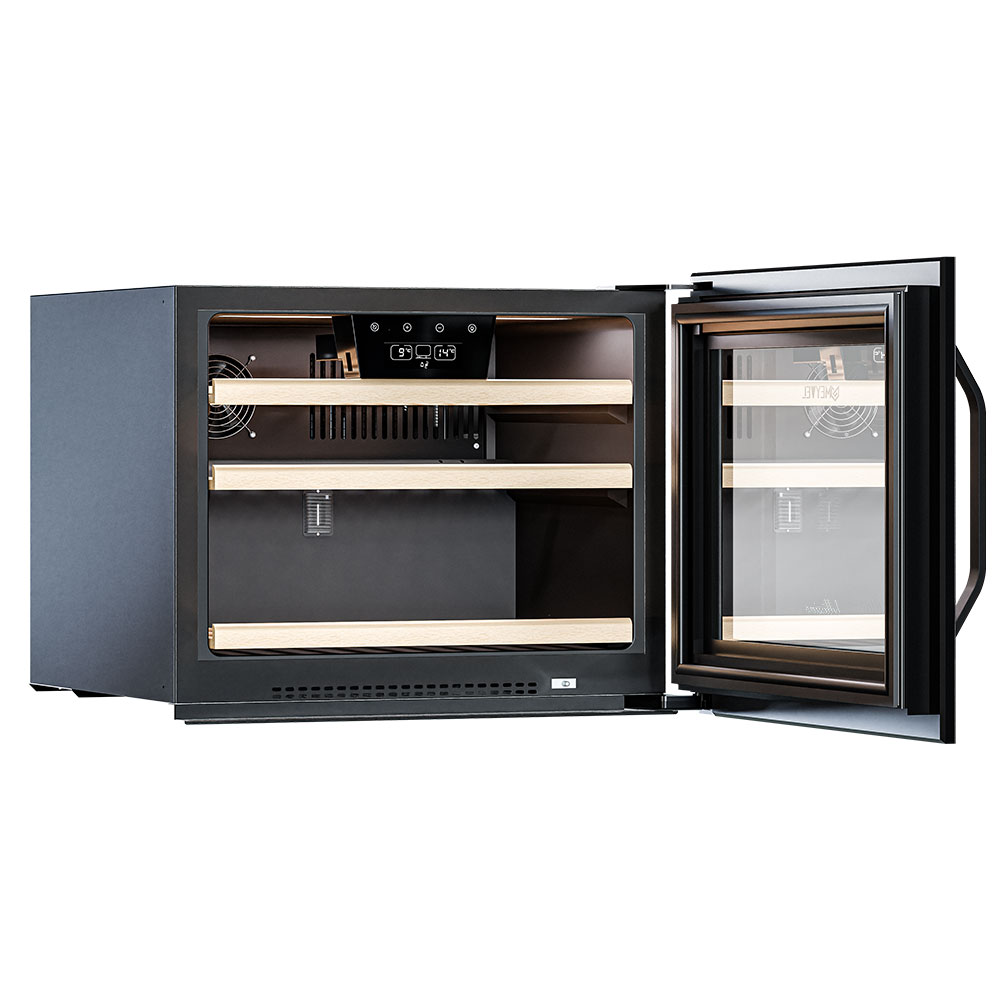 Модель MV22-KBB1 имеет привлекательный внешний вид, сочетающий в себе неподвластное времени очарование натуральных материалов с высокотехнологичными системами сохранения пищевых продуктов. Винный холодильник Meyvel MV22-KBB1 оснащен дверью с защитой от ультрафиолетовых лучей и отлично подойдет для хранения и созревания различных сортов вин. Динамическая система охлаждения обеспечивает оптимальную температуру для вина и сохраняет необходимую влажность внутри камеры.