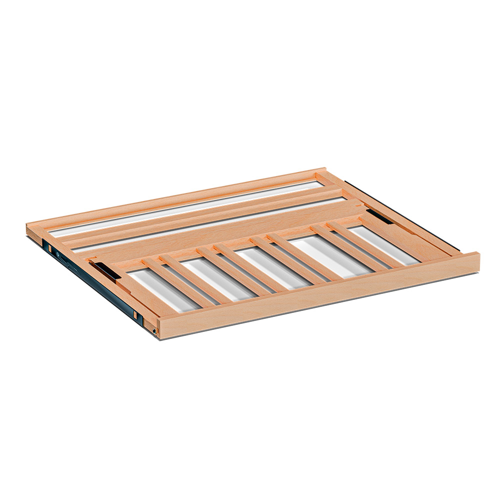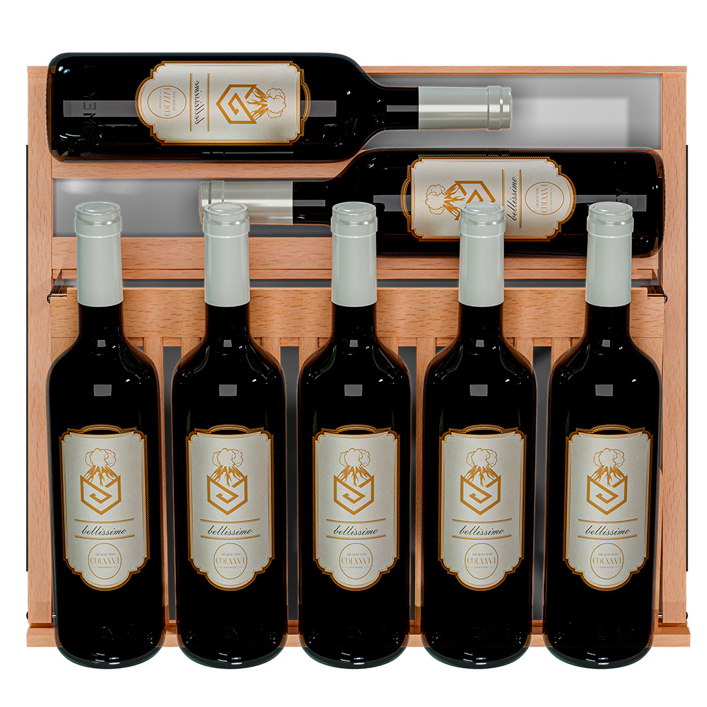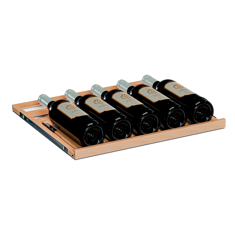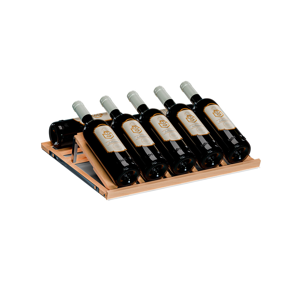 Полка-трансформер для винного шкафа изготовлена вручную из массива бука и отлично подойдет для демонстрации напитков. Вы можете использовать полку как для стандартного наполнения, так и для демонстрации вин. Дерево гасит вибрации и посторонние шумы, обеспечивая винам полный покой. В сложенном состоянии она может разместить до 6 бутылок, но если снять полку сверху - то до 10. В демонстрационном положении есть возможность разместить 7 бутылок.